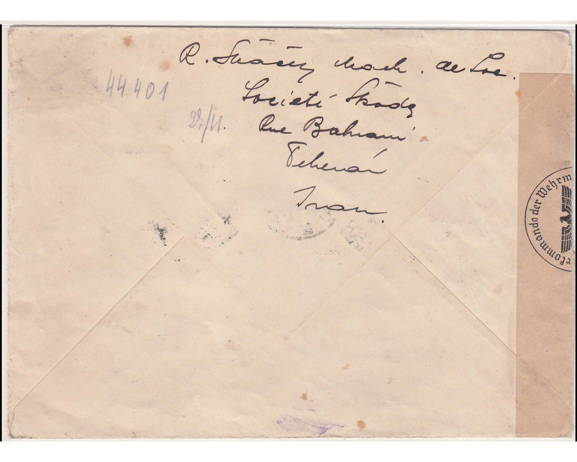 1939 Censured Airmail from Tehran to Germany