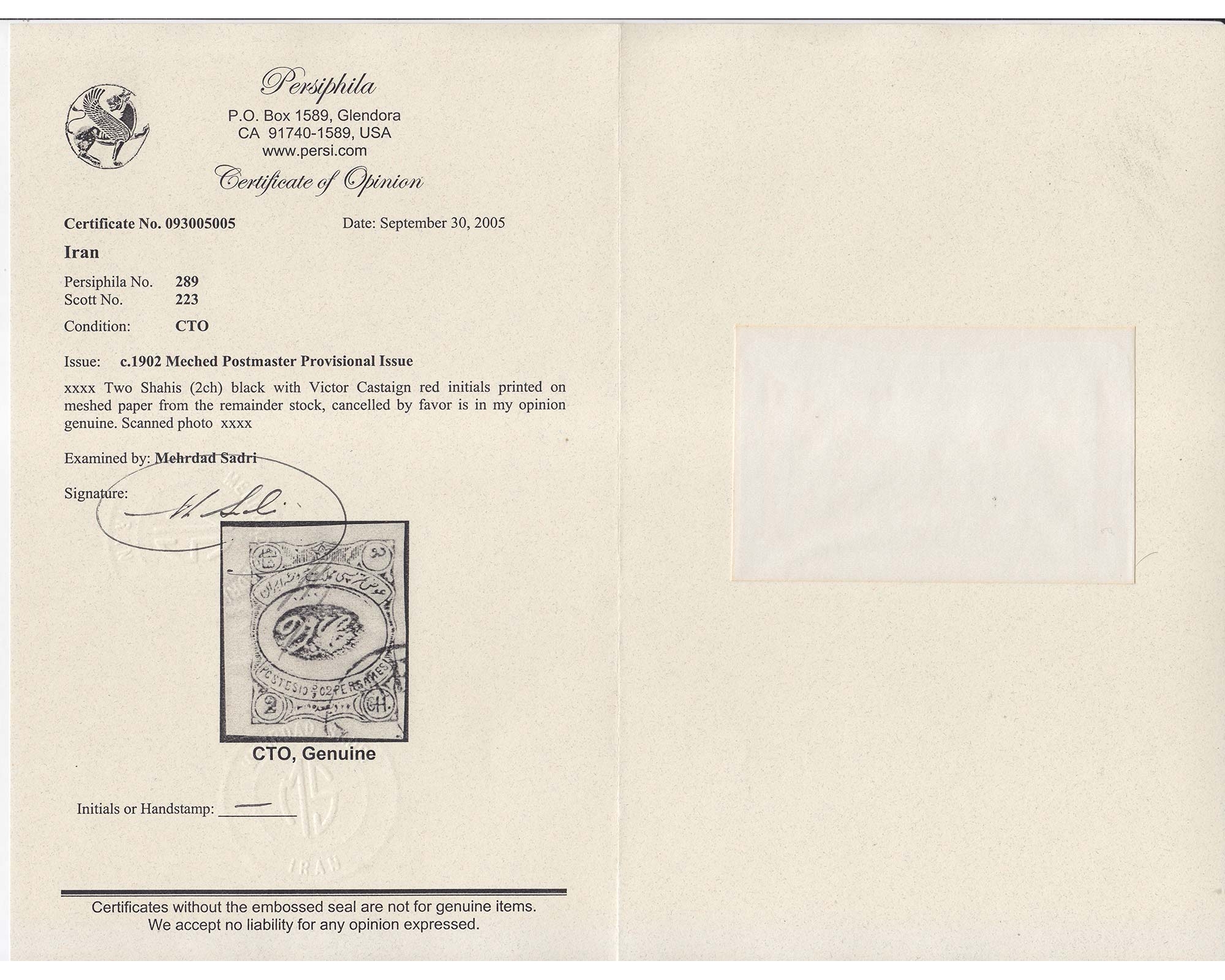 1902 5 Chahi Violet Meshed Issue Signed by Mr. Sadri