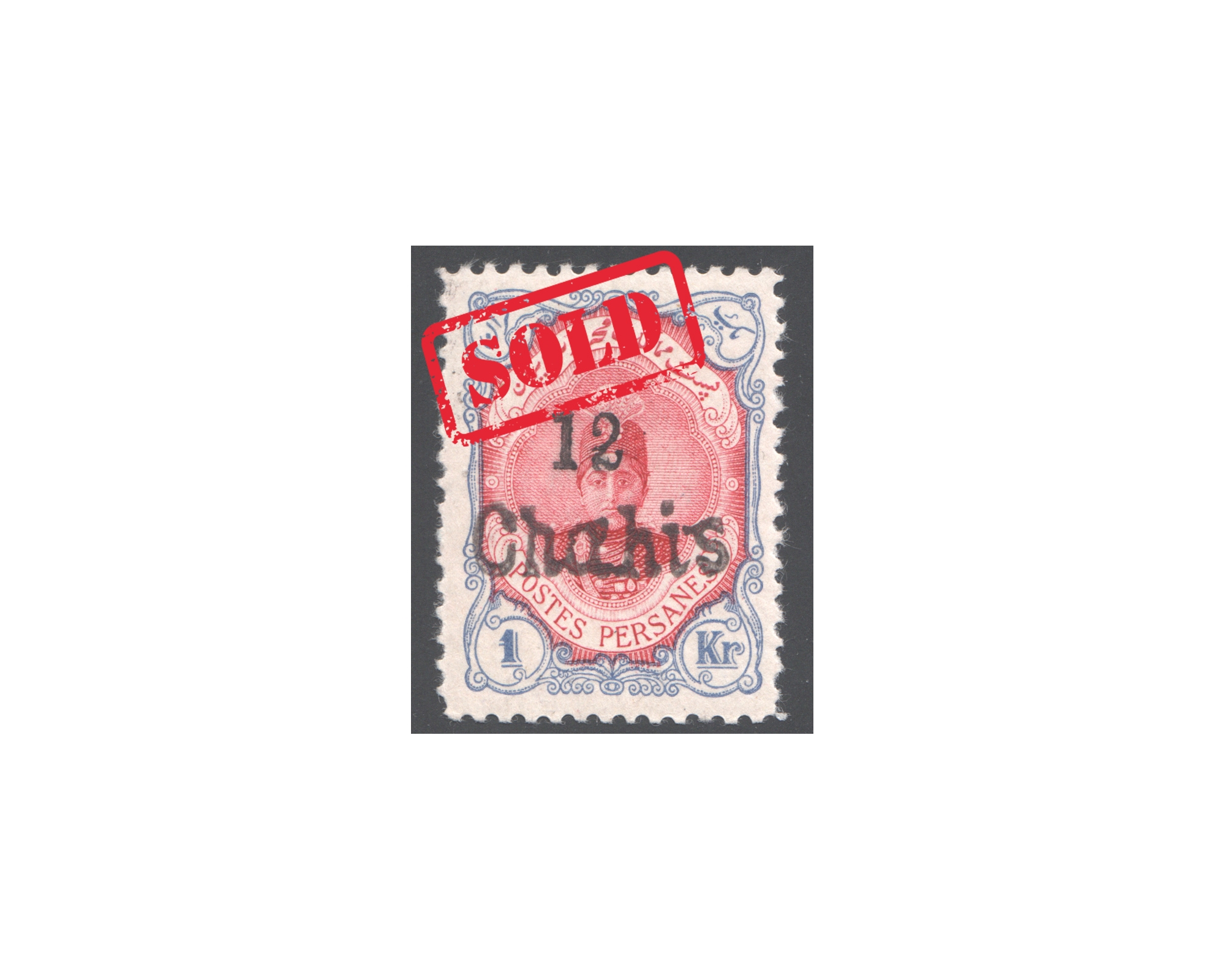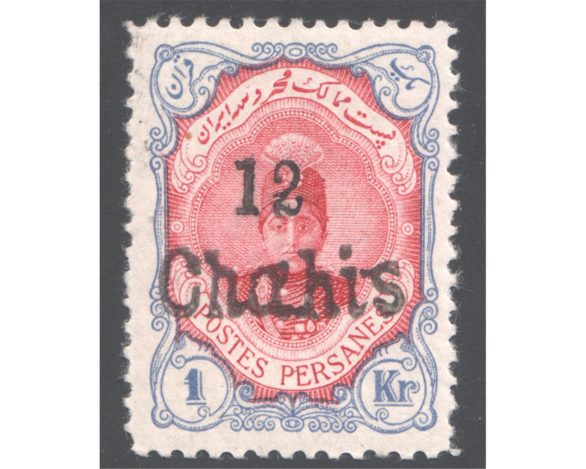 1917 Kermanchah issue 12ch IPS Certificate Signed Dr. Dadkhah1 Kran Gray with 12 Chahi overprint Condition: Mint Light trace of Hingeاثر خفیف شارنیه