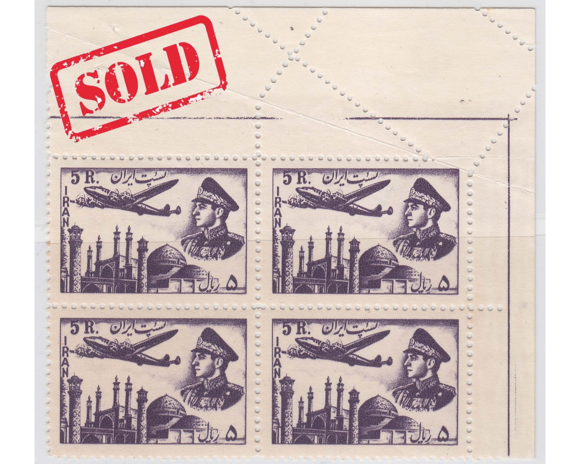 Perforation Error 5 Rial 1953 Airmail Issue