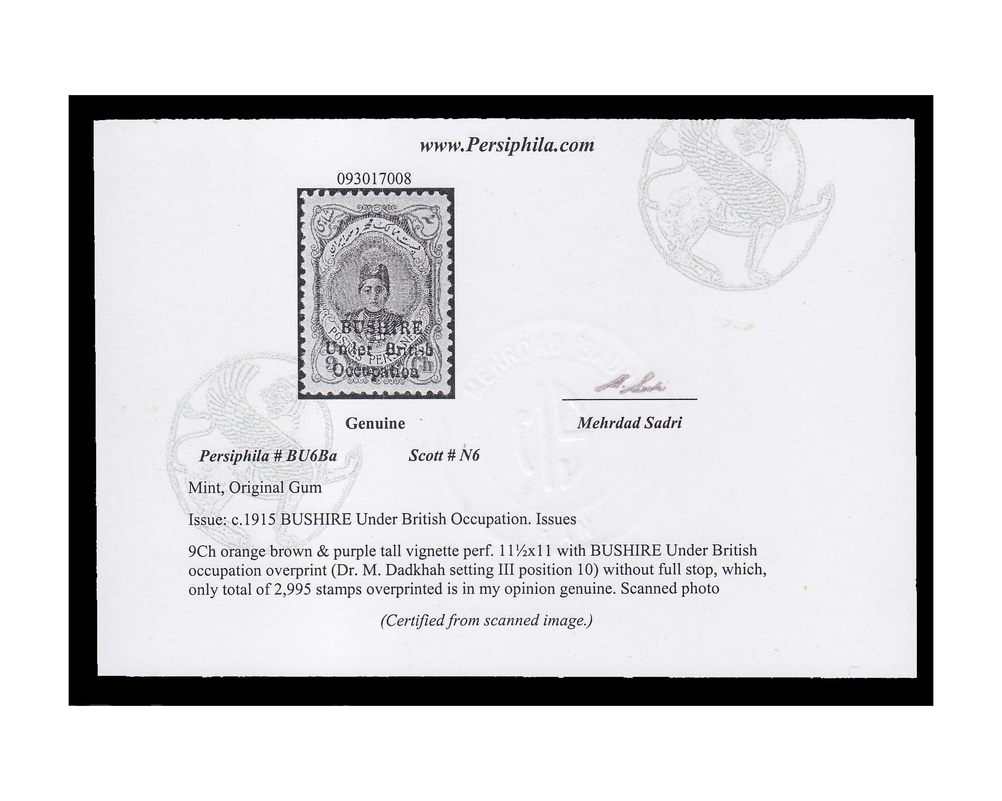 1918 1337 hanstamped Issue Full Set Signed by Mr. Sadri