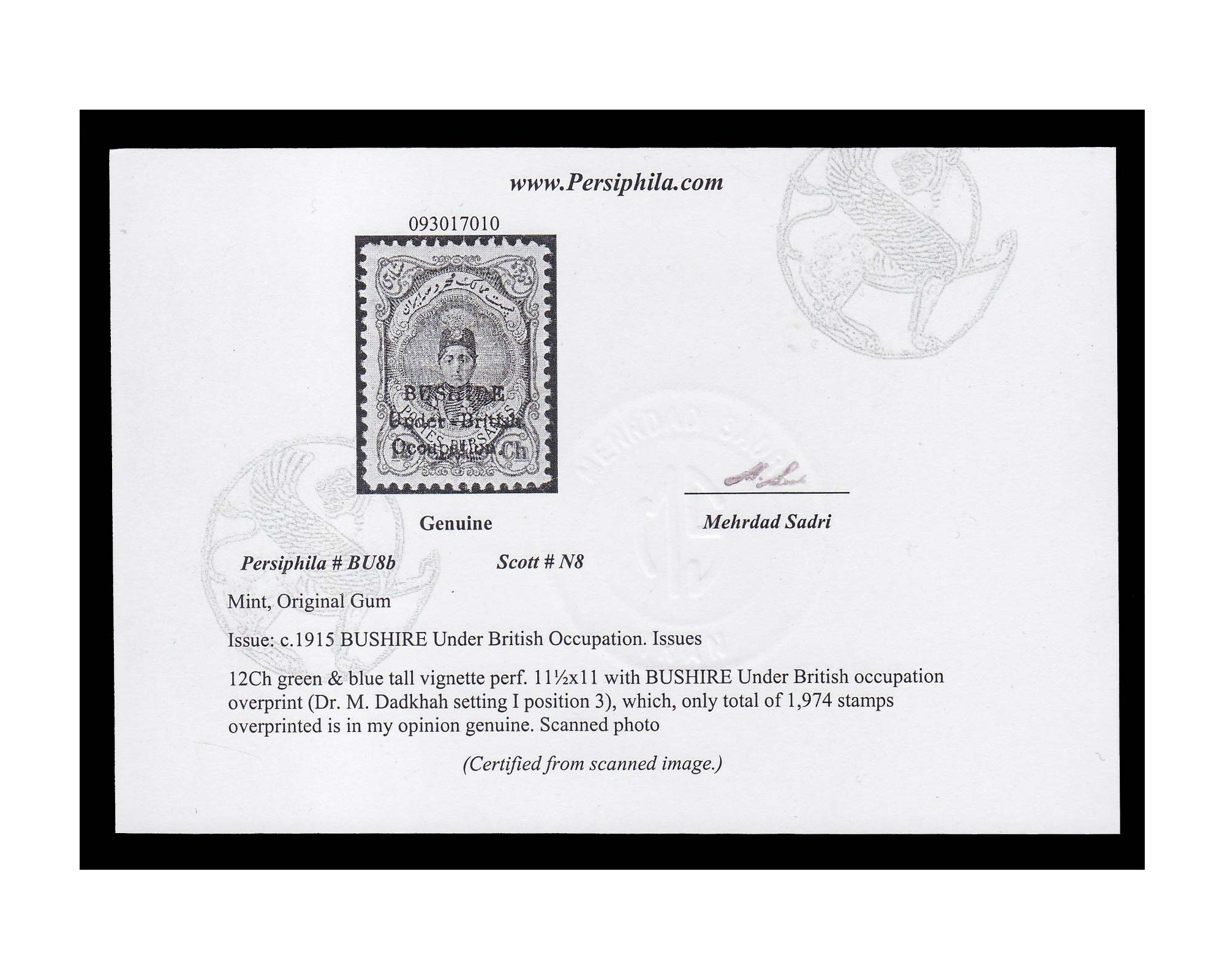 1918 1337 hanstamped Issue Full Set Signed by Mr. Sadri
