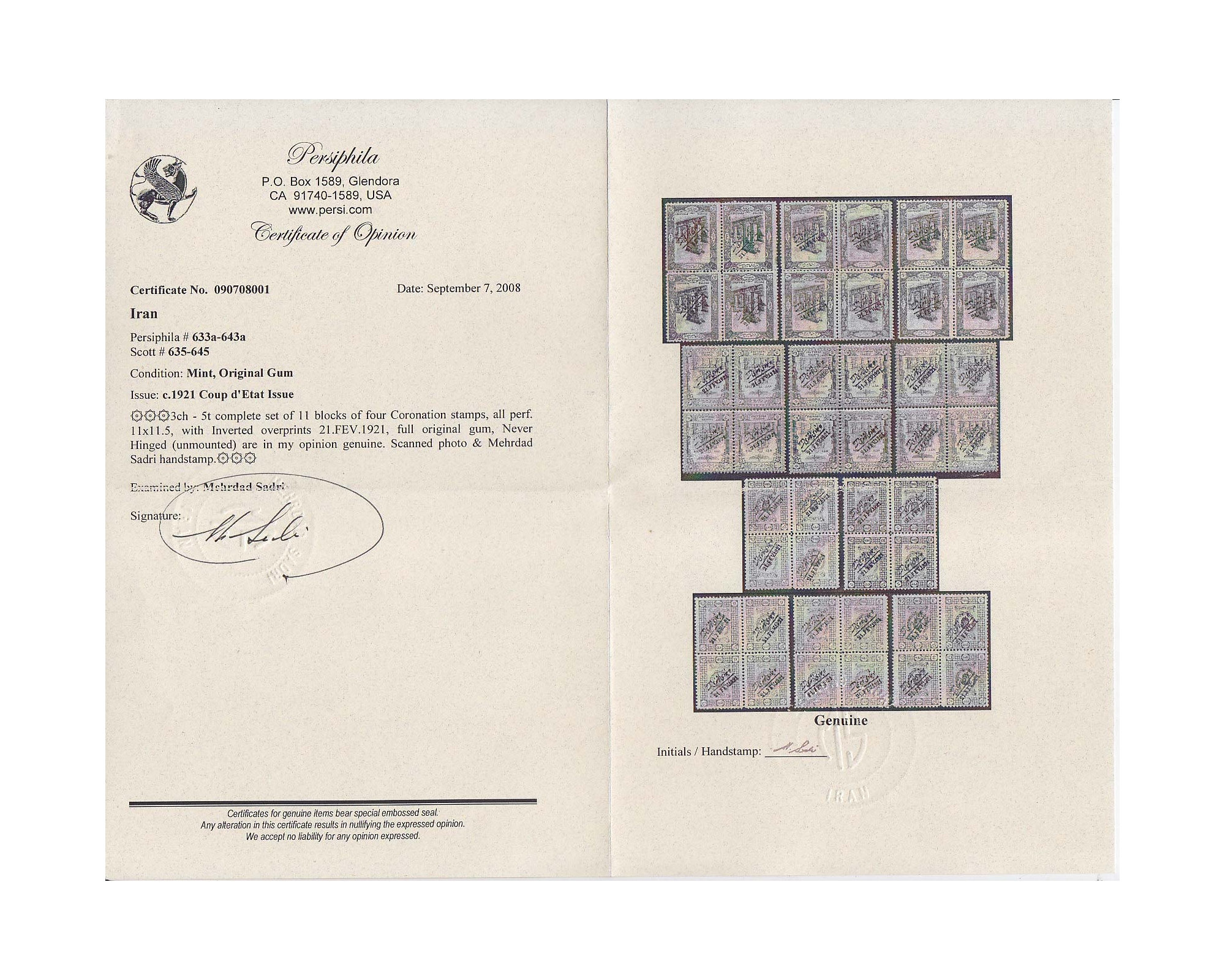 1918 1337 hanstamped Issue Full Set Signed by Mr. Sadri
