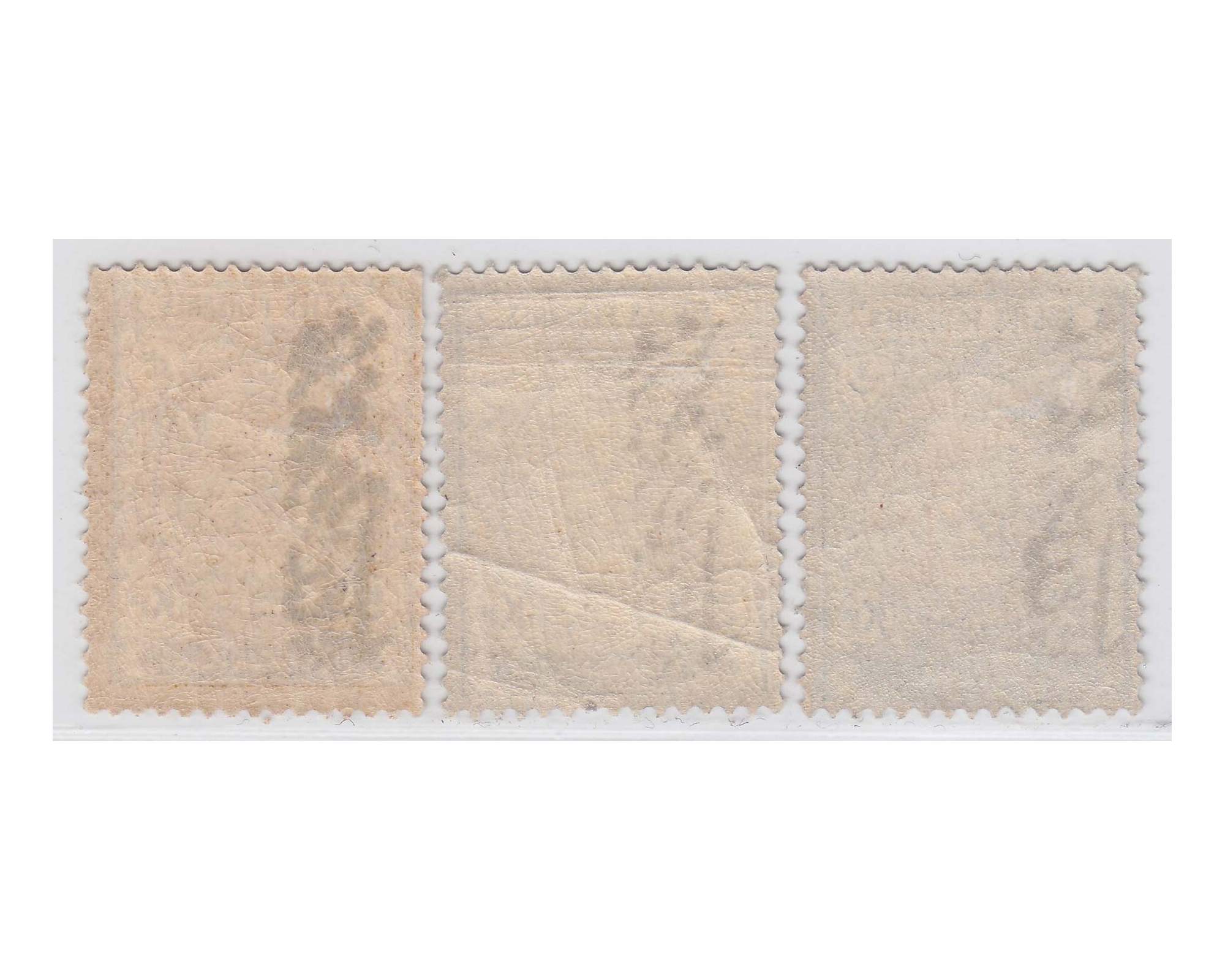 Qajar Revenues (Traveler's passage fees) hand stamped on Ahmad Shah coat of arms issue Baharaeen Catalogue No. Q221, Q222, Q223 Condition; Mint Never Hinged