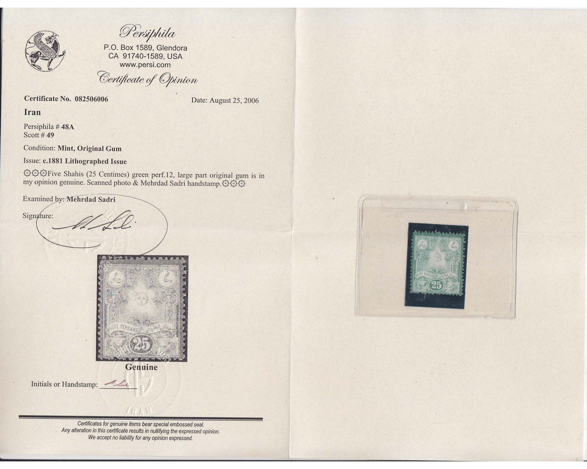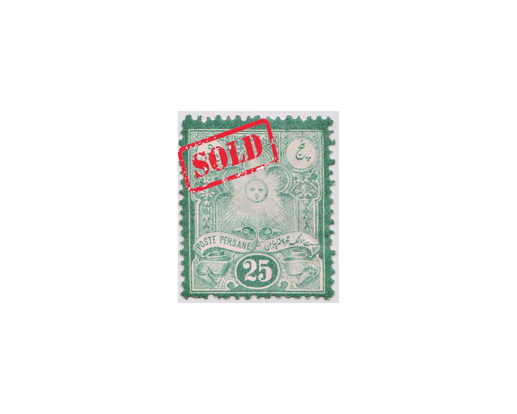 سال ۱۲۶۰ـ ۲۵ سانتیم از سری لیتوگراف با گواهی اقای صدریکیفیت: با اثر شارنیه یکی از کمیاب ترین و نایاب ترین تمبرهای ایران