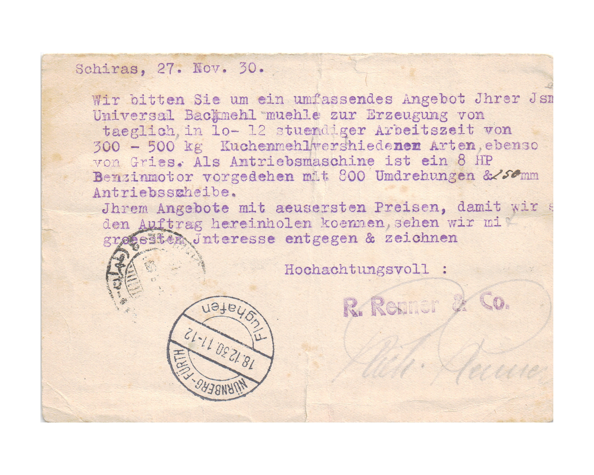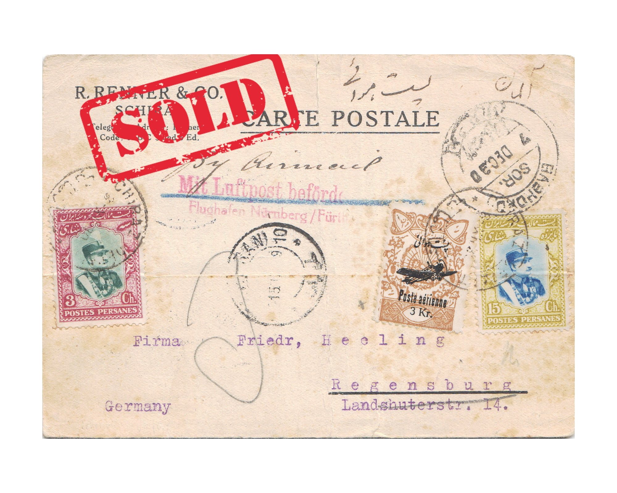 1930 Airmail Postcard from Shiraz to GermanyPostcard has a fold in the middel