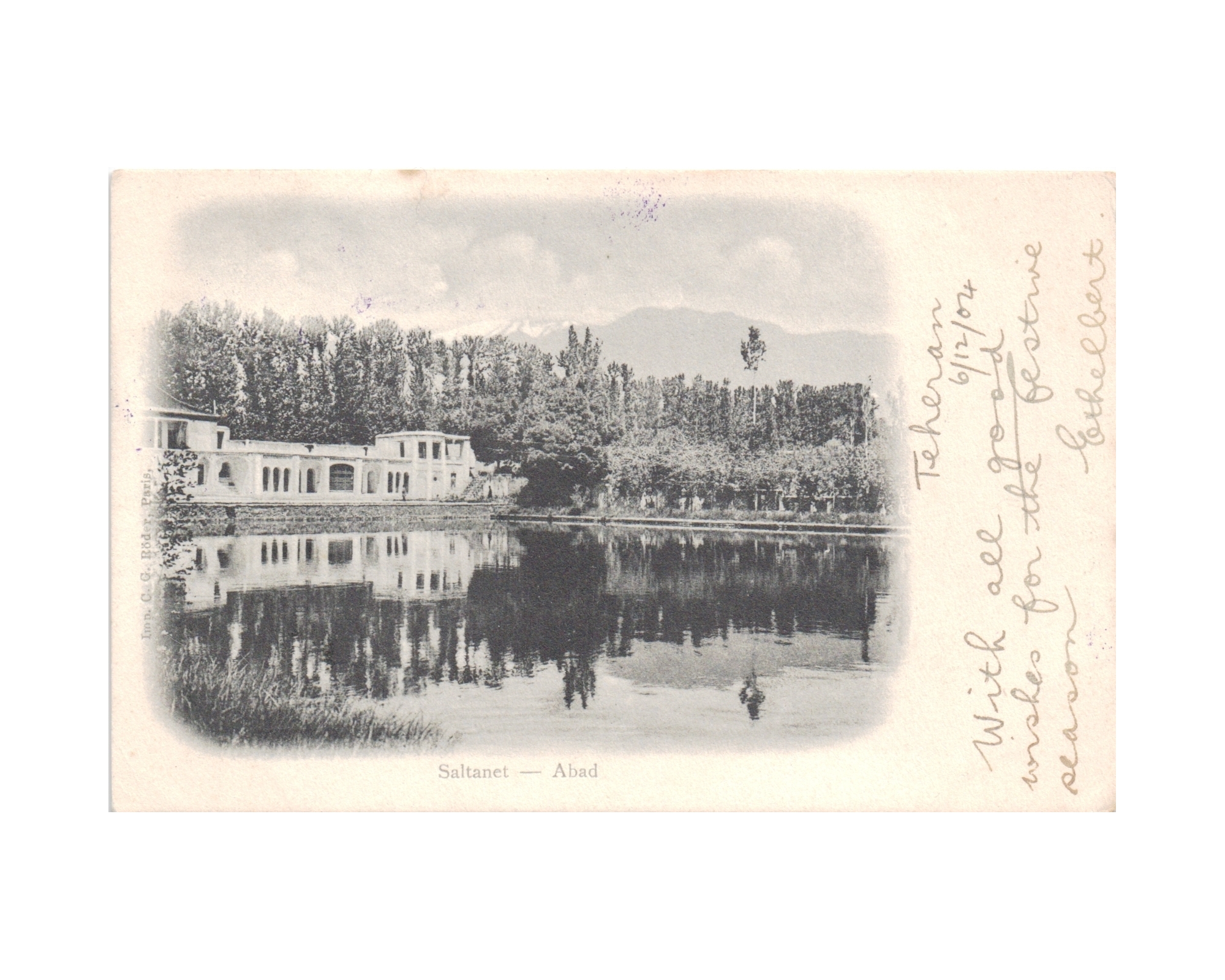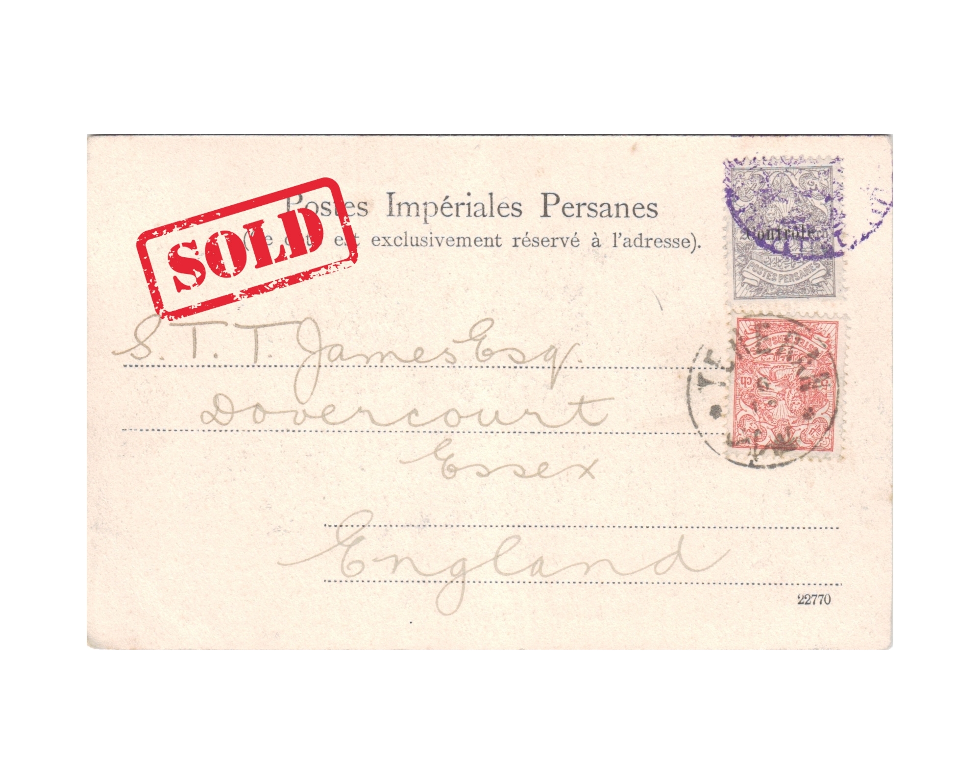 Controle Picture Postcard from Tehran to EnglandWith 2ch Controle overprint & Controle Circolar PostmarkRare combination of Duoble Control Marking