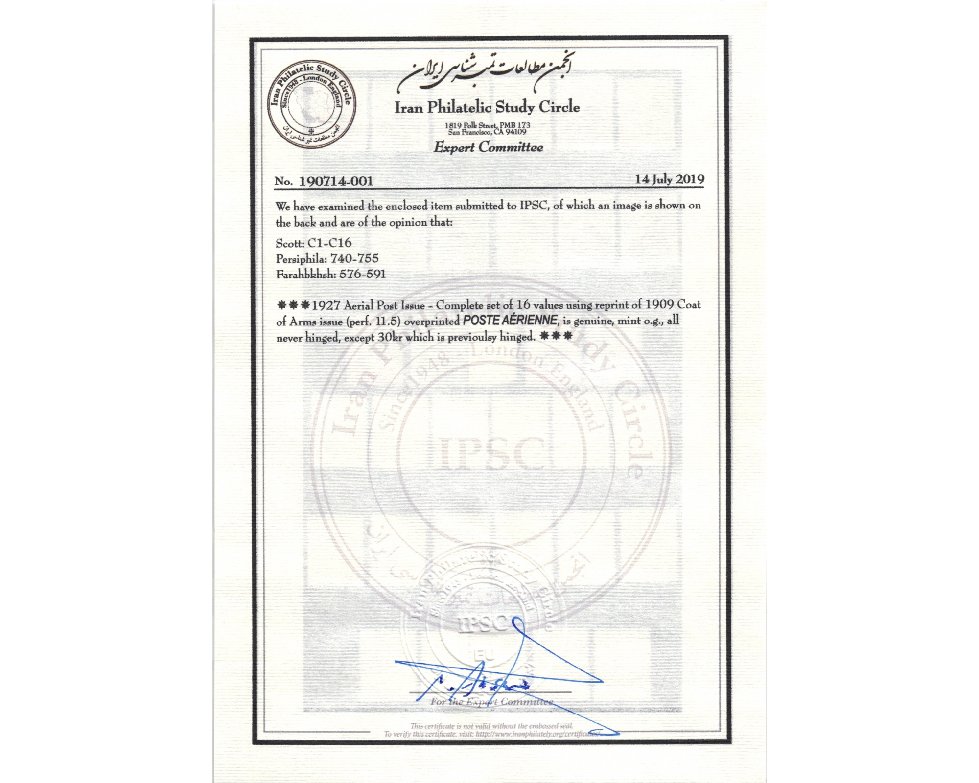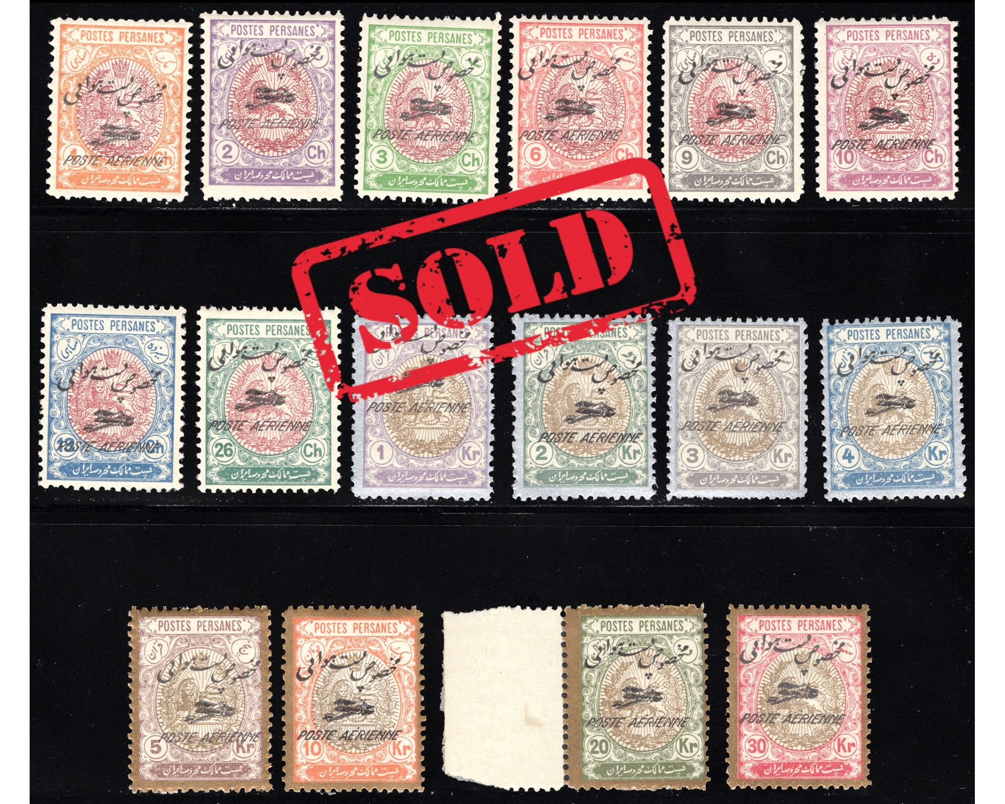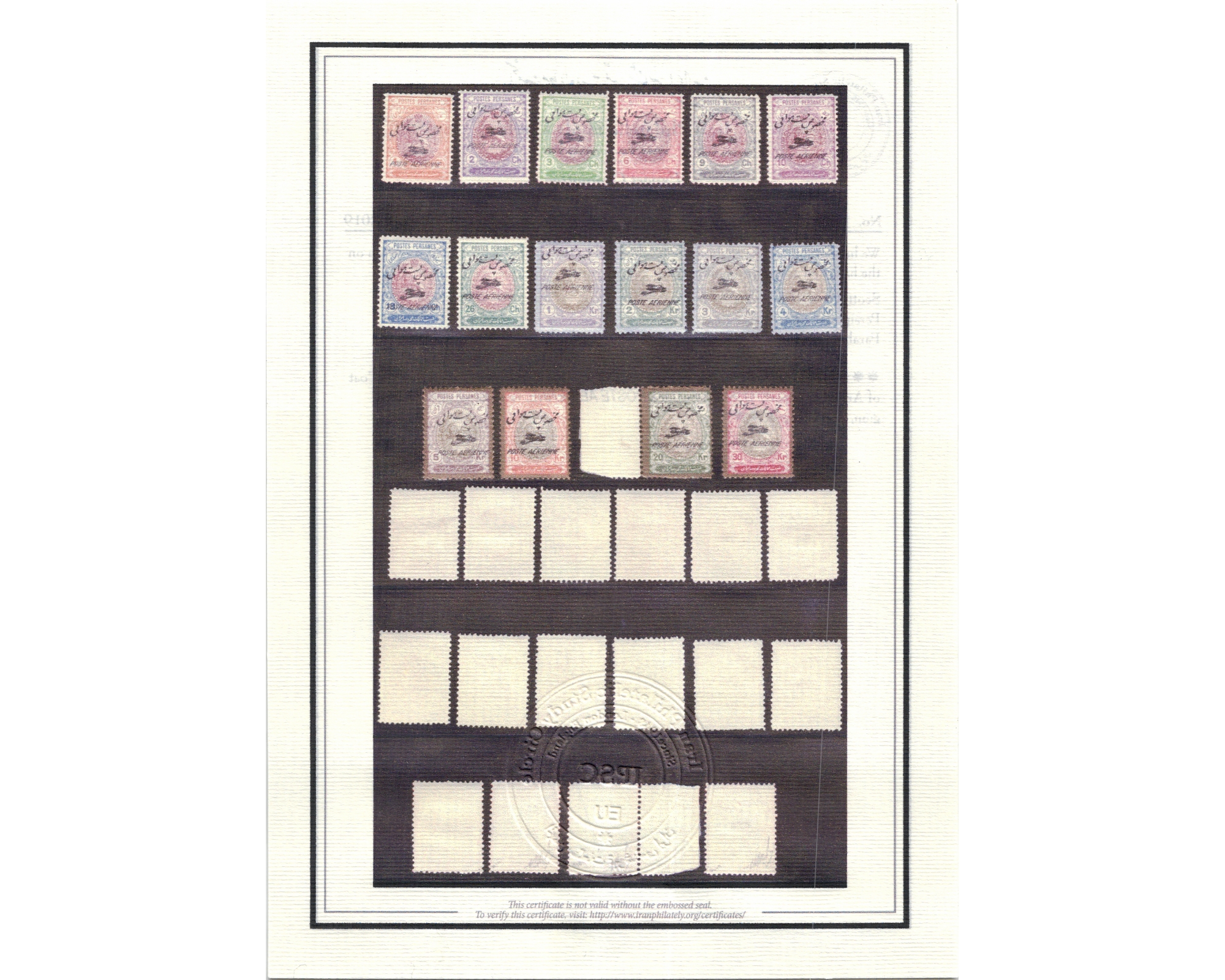 1927 First Airmail Issue Full Set Certificated by IPSC Condition; Mint Never Hinged, Only 3kr Very light Hinge فقط سی ریال با اثر خیلی ضعیف شارنیه بدونه اثر شارنیه ـ کیفیت چسب عالی