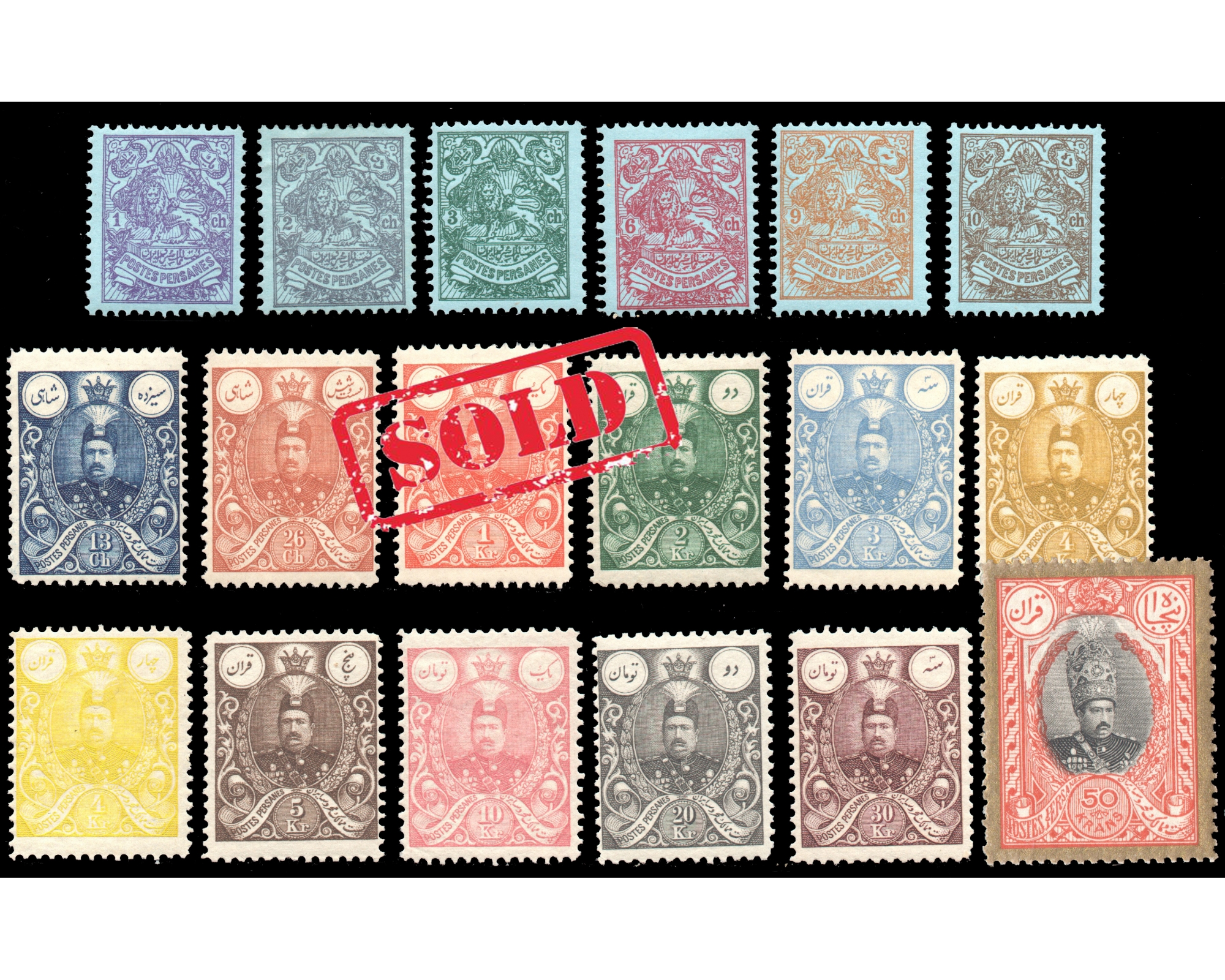 سری محمدعلی شاه قاجار بدون اثر شارنیه Condition; Mint Never Hinged بدونه اثر شارنیه ـ کیفیت چسب عالی