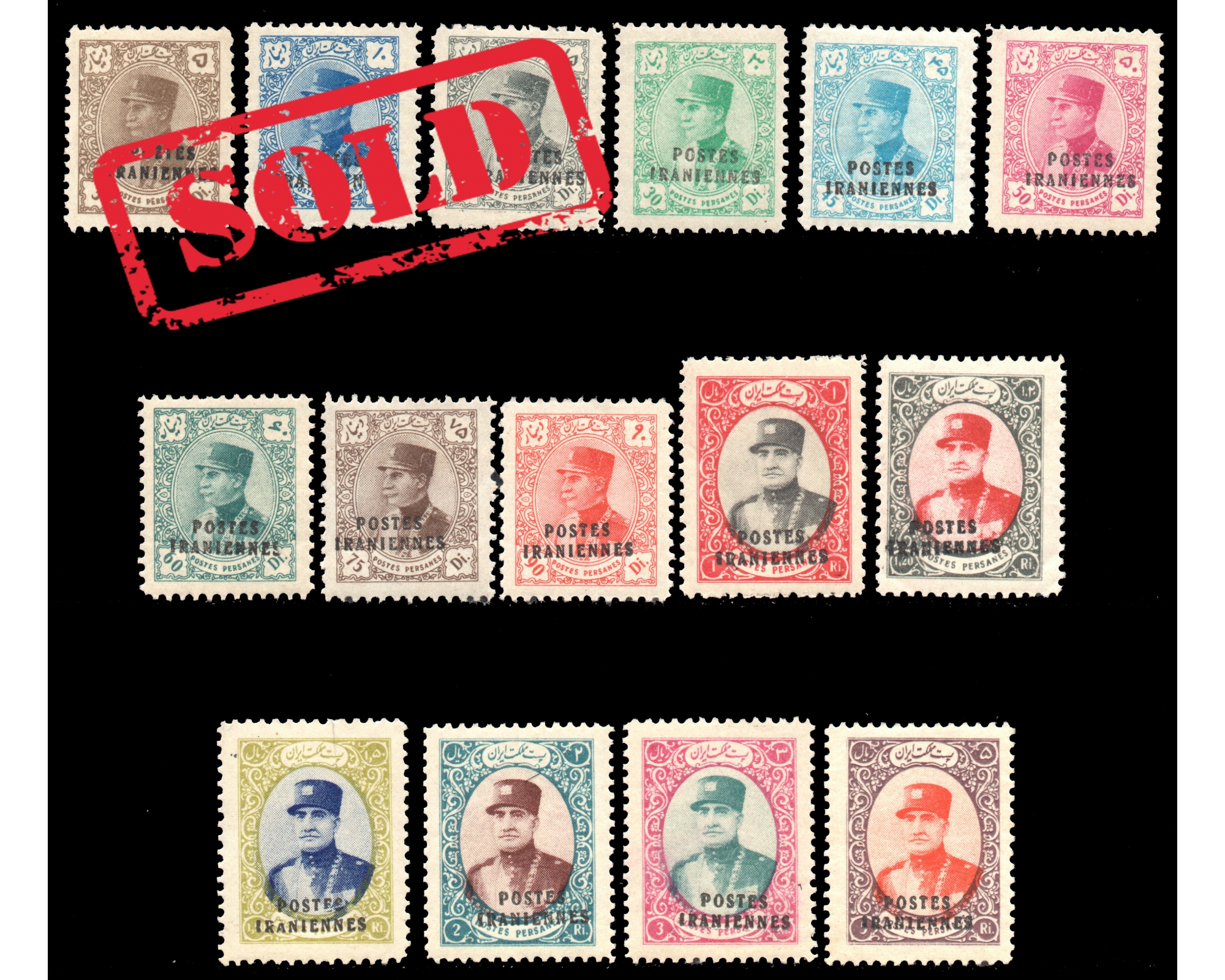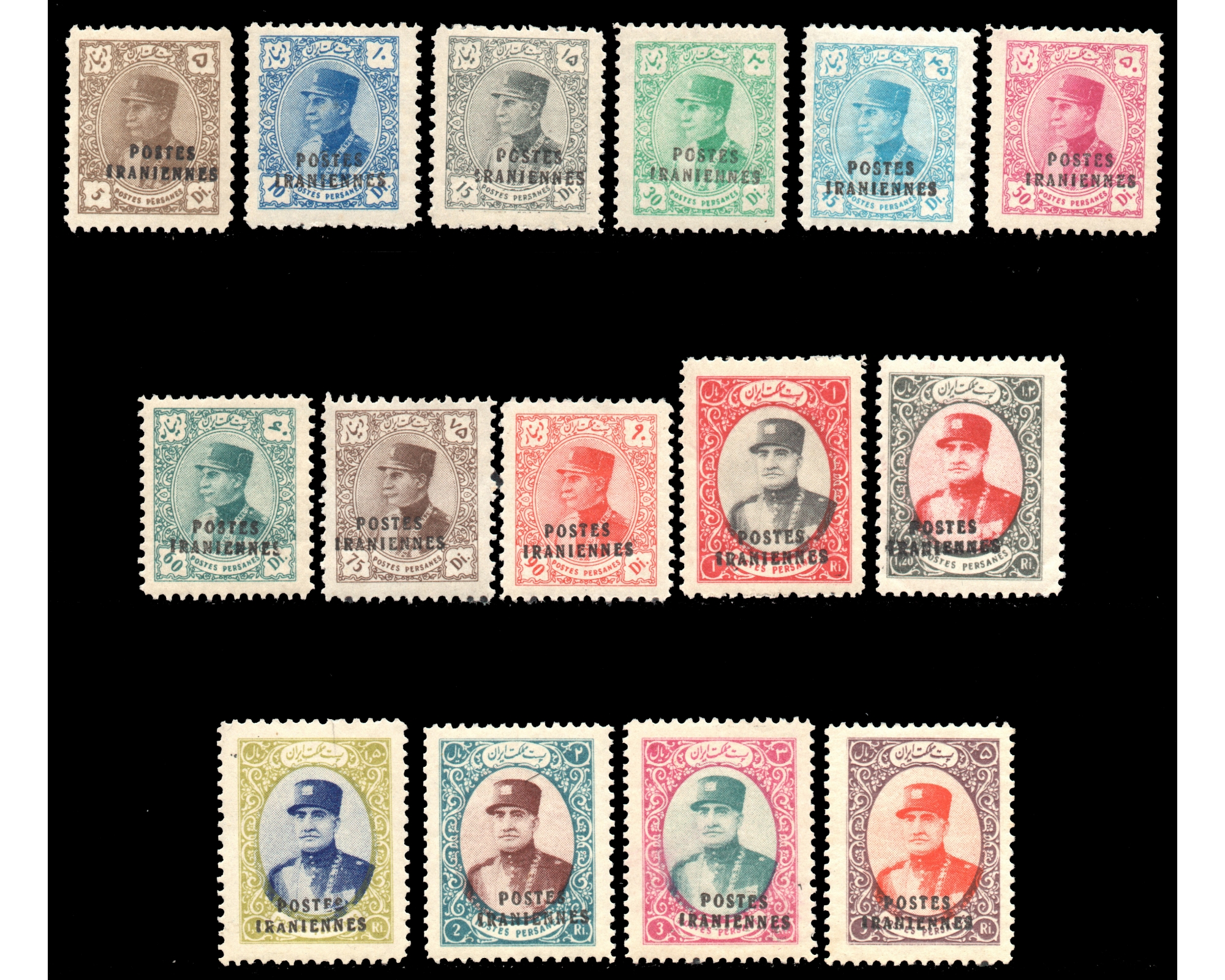 بدون اثر شارنیه POSTES IRANIENNES سری دیناری باCondition; Mint Never Hinged بدونه اثر شارنیه ـ کیفیت چسب عالی