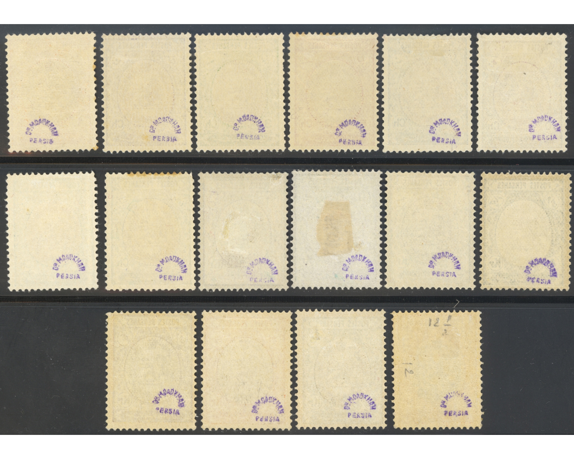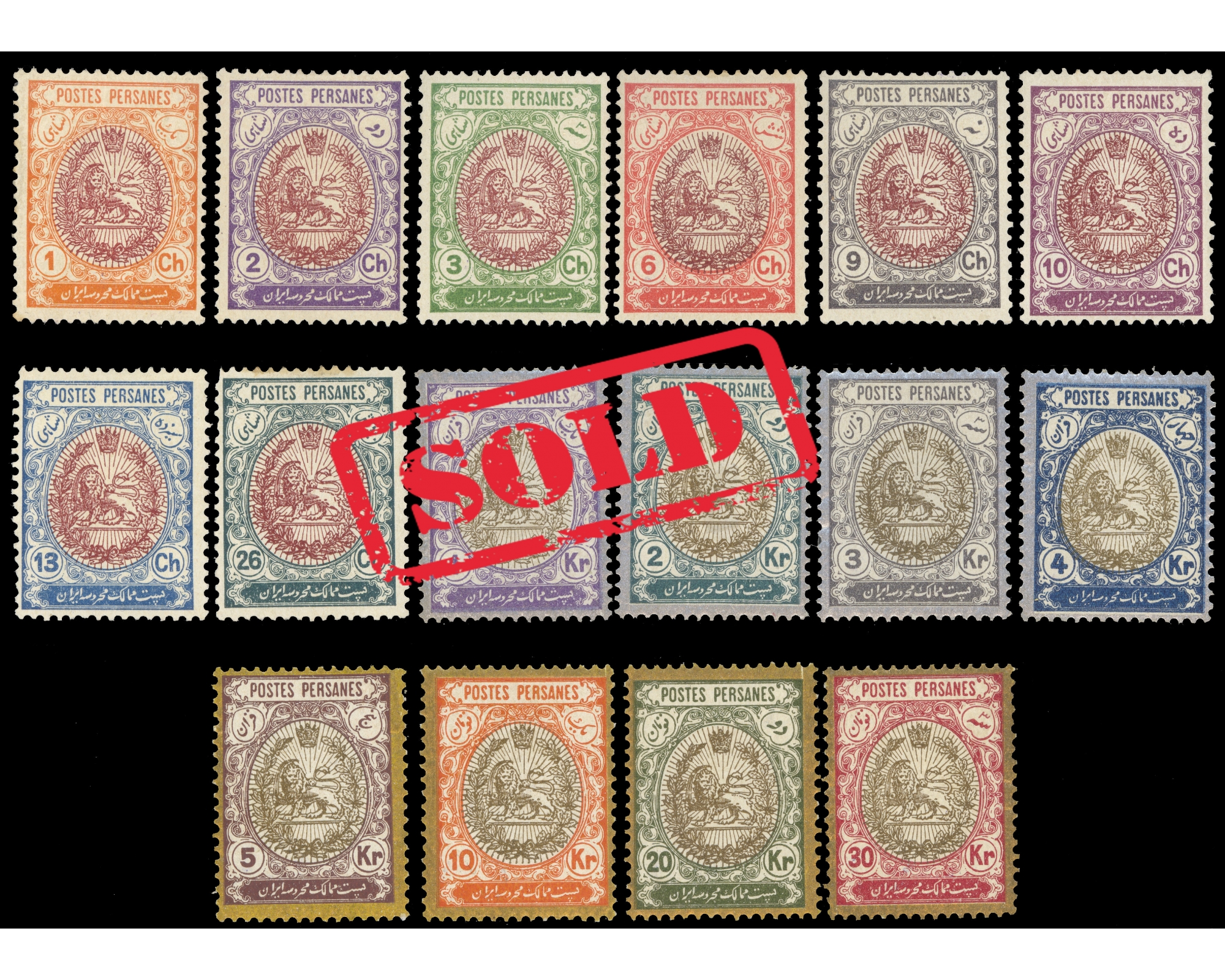 احمد شاه قاجار سری شیر و خورشید مشروطه با امضای دکتر دادخواه Condition; Mint Very Light Trace of Hinge همگی با چسب اورجینال با اثر بسیار ضعیفه شارنیه تمبر دوریان پوست کند گی در زیر شارنیه