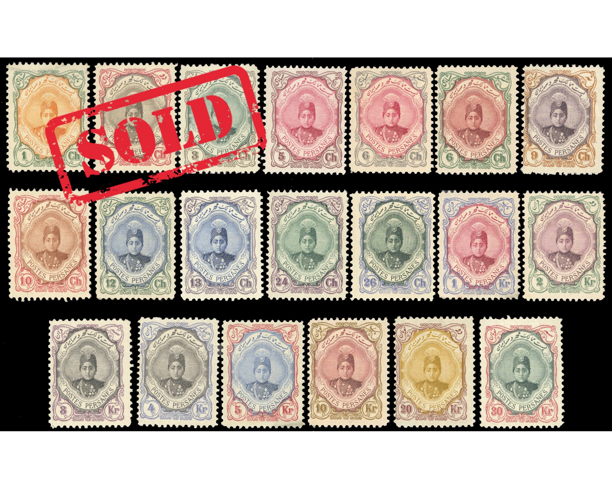احمد شاه قاجار سری احمدی کوچک بدونه اثر شارنیه ـ کیفیت چسب عالی نه شاهی و ۴ قران با اثر خفیف شارنیه