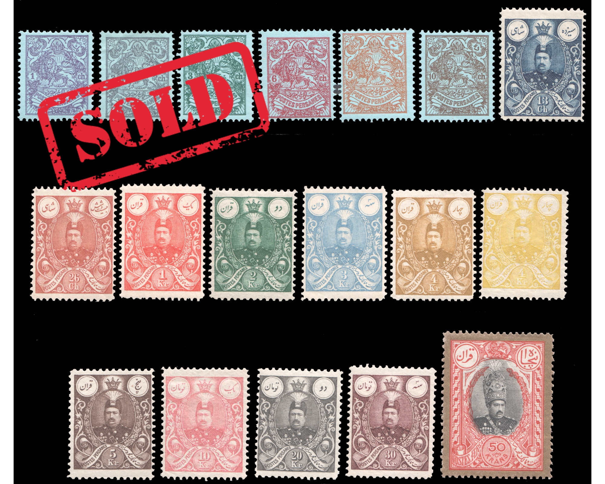 سری محمدعلی شاه قاجار بدون اثر شارنیه Condition; Mint Never Hinged بدونه اثر شارنیه ـ کیفیت چسب عالی