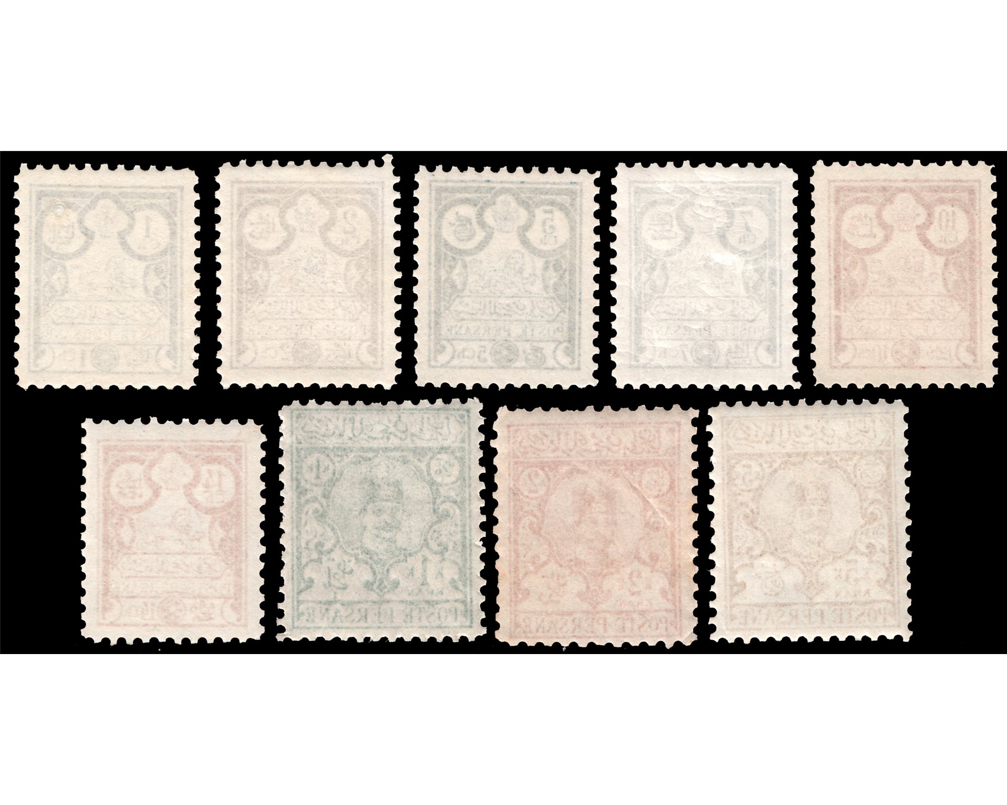 سری محرابی ناصرالدین شاه قاجار بدون اثر شارنیه Condition; Mint Never Hinged بدونه اثر شارنیه ـ کیفیت چسب عالی