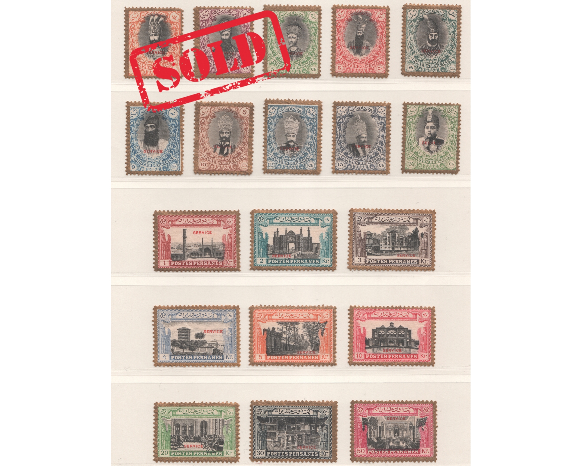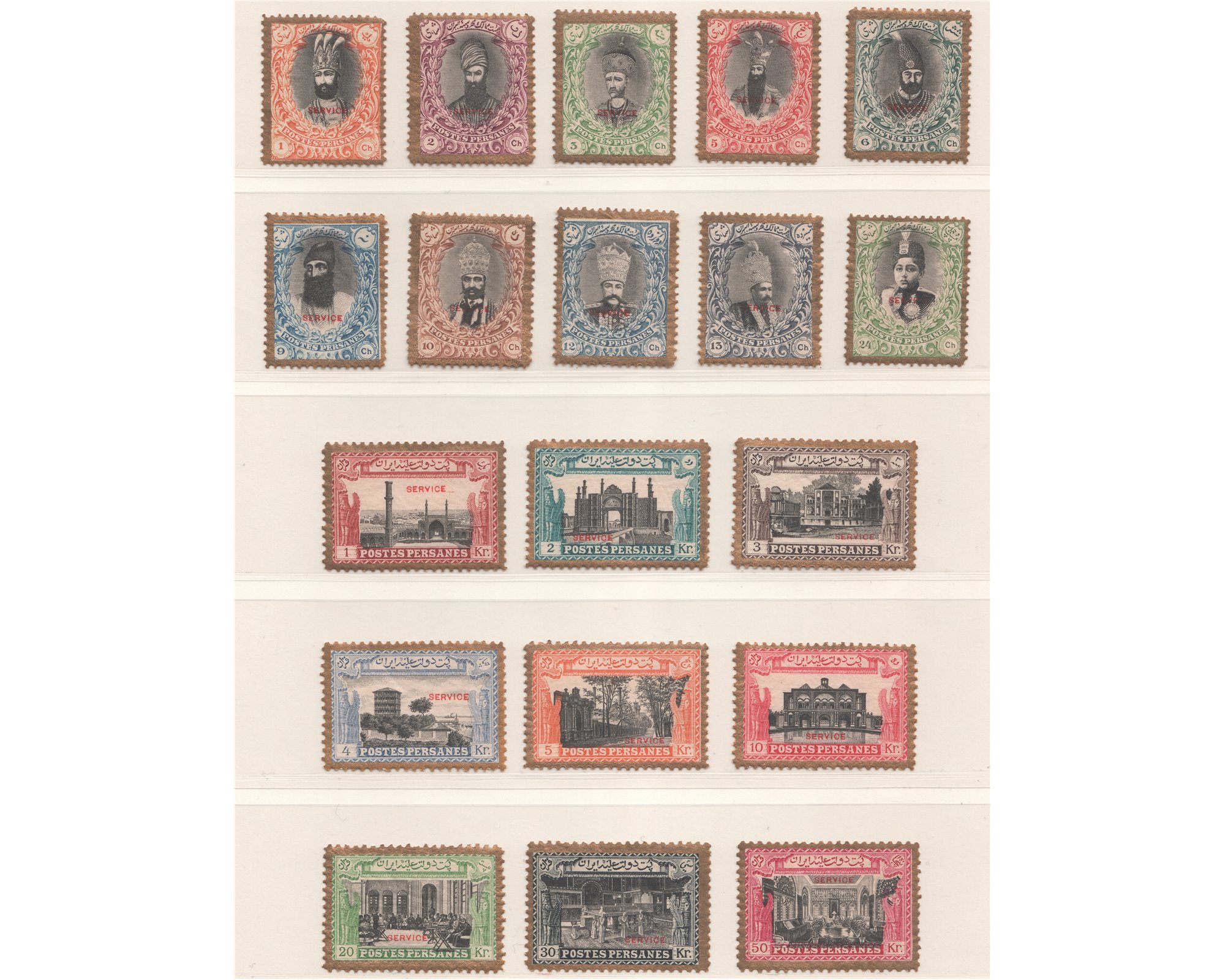 1915 Unissued Kings and buildings " Salatin"Service Issue Condition: Mint Never Hingedبدون اثر شارنیه
