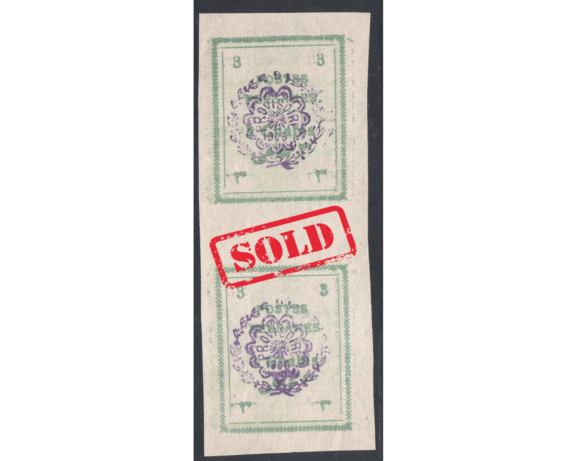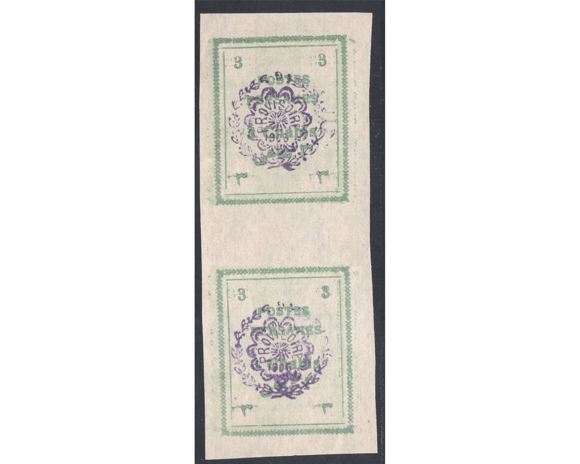 1906 Mozafar Edin Shah 3ch with Unadopted OverprintCondition; Mint Never Hinged بدونه اثر شارنیه ـ کیفیت چسب عالی