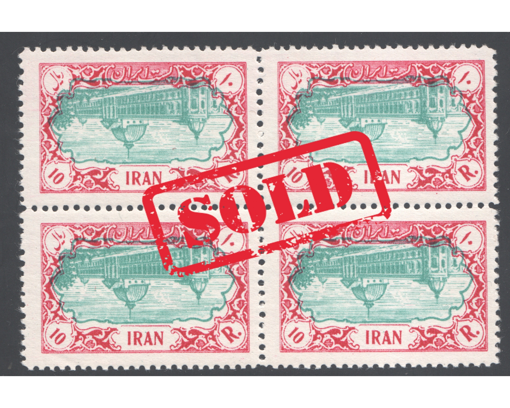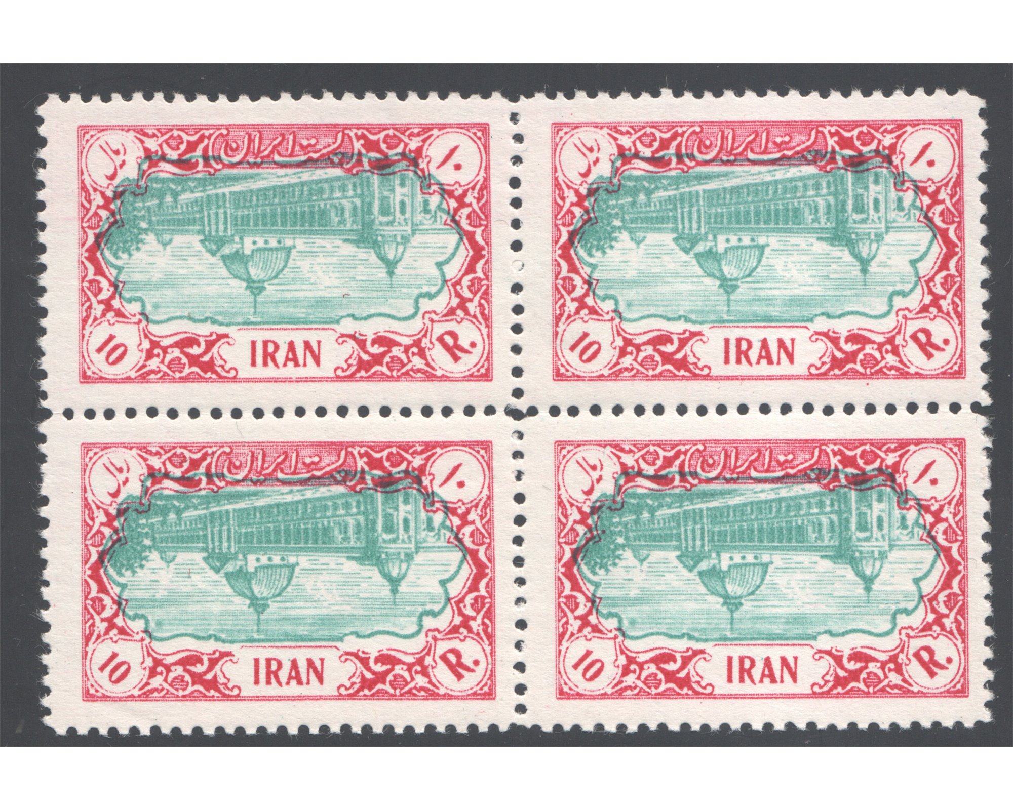 10 Rial 3rd Defenitive Issue Inverted Center Block of 4Condition; Mint Never Hinged بدونه اثر شارنیه ـ کیفیت چسب عالی