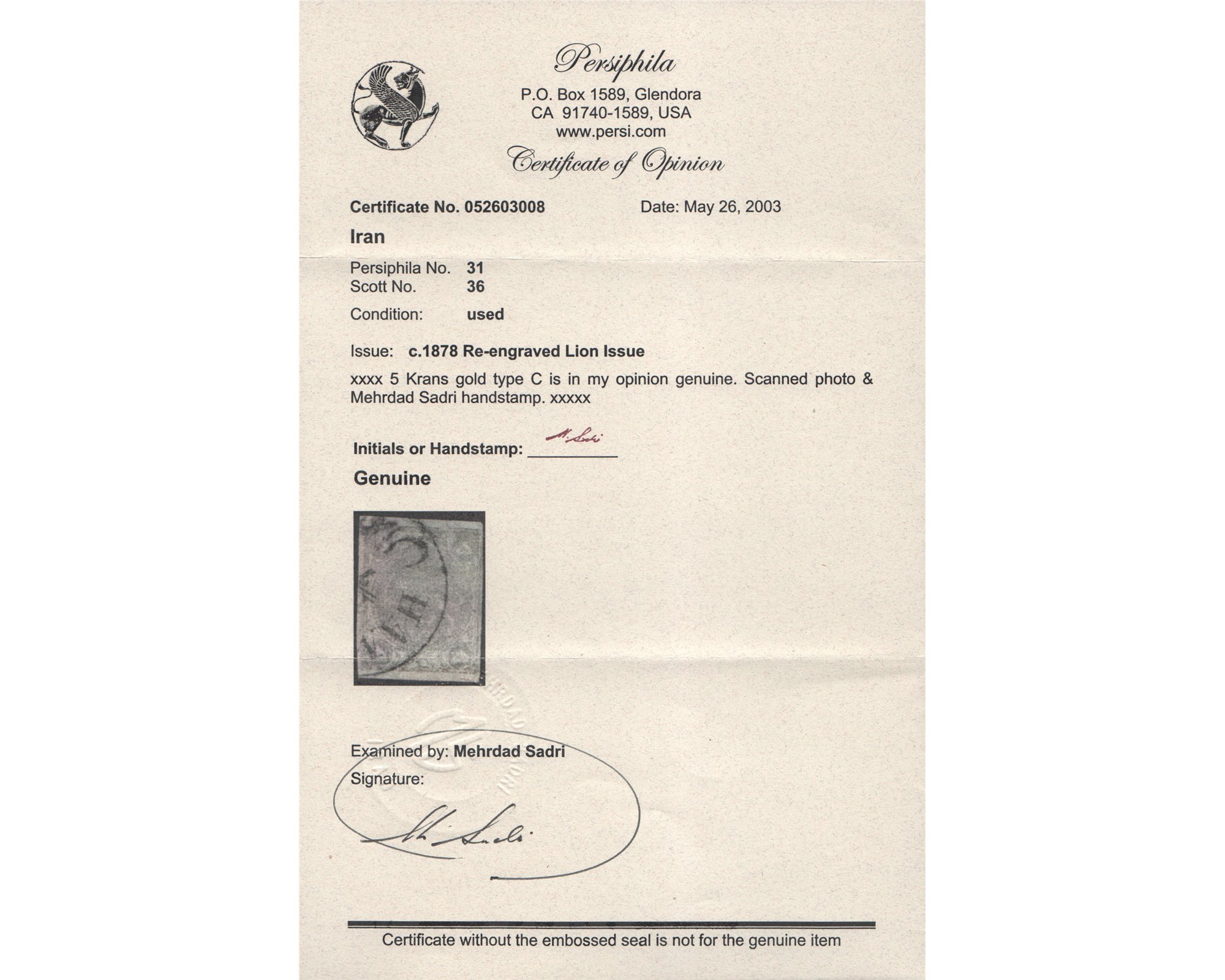 سال ۱۲۵۷ـ ۵ قرآن طلائی با گواهی آقای صدری"Type C" Farahbakhsh N° 30; Persiphila 31