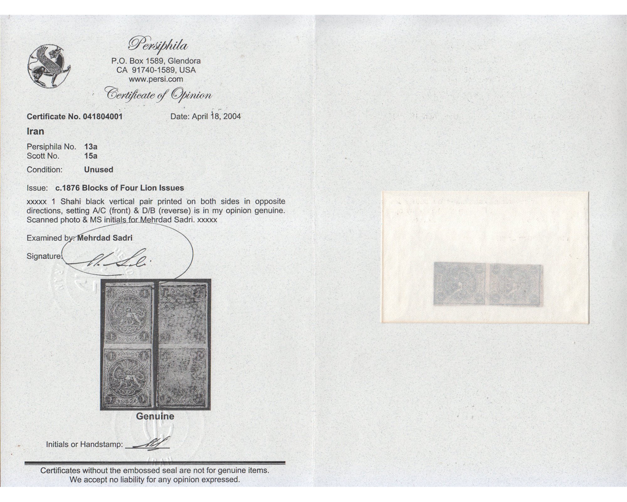 Persiphila Cat. Un Priced Certificate By Mr. SadriExteremly Rare in apposite Direction