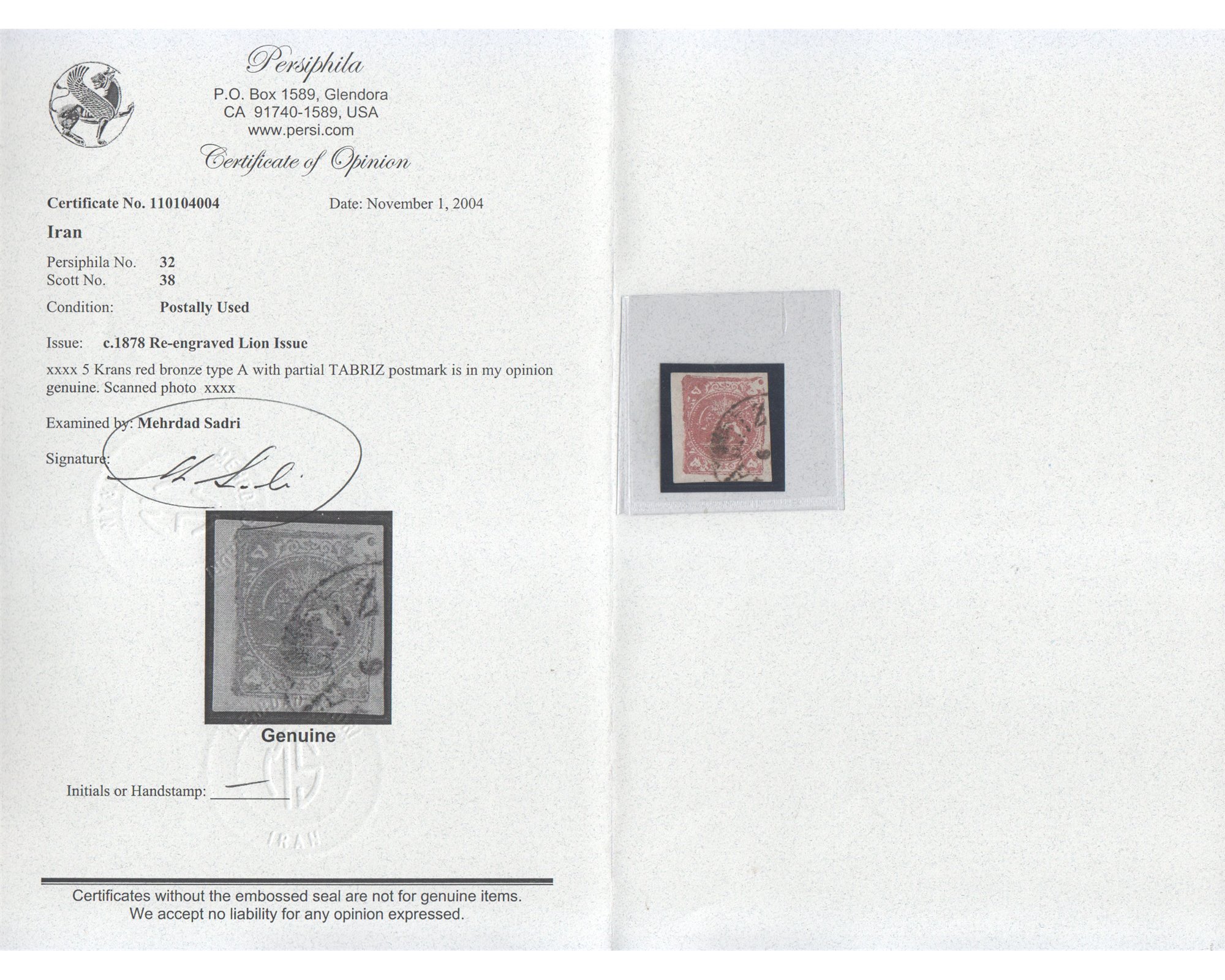 سال ۱۲۵۷ـ ۵ قرآن برنز قرمز با گواهی آقای صدری"Type A" Farahbakhsh N° 31; Persiphila 32
