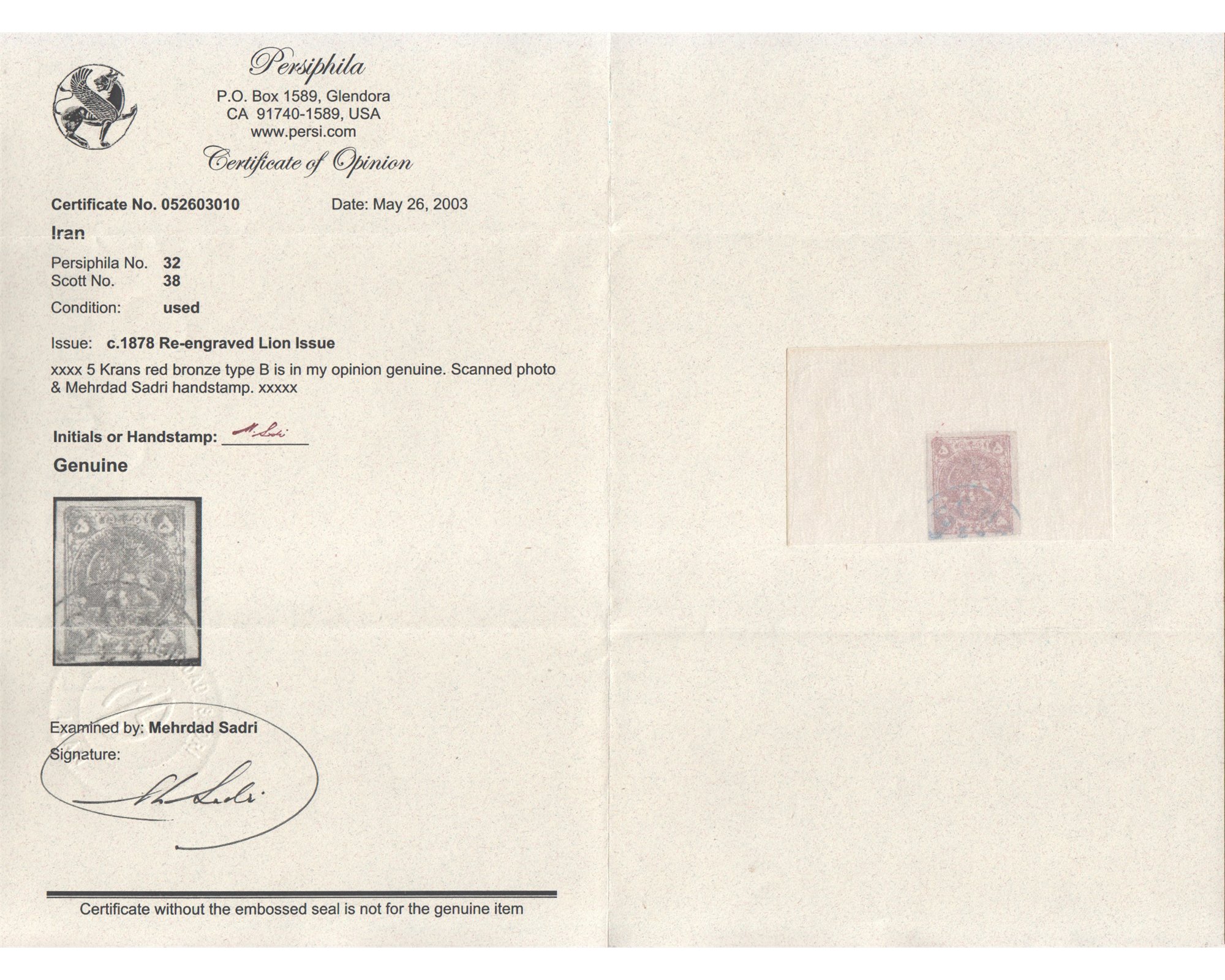 سال ۱۲۵۷ـ ۵ قرآن برنز قرمز با گواهی آقای صدری"Type B" Farahbakhsh N° 31; Persiphila 32