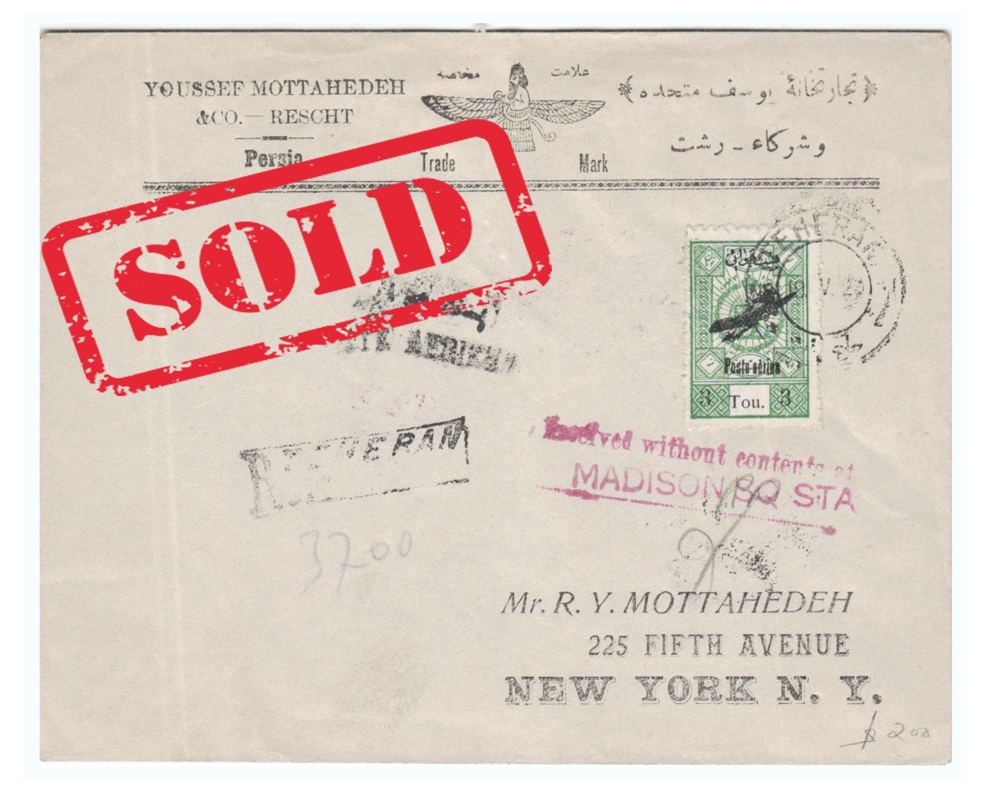 1929 Airmail from Rasht to New York with Rare 30Kran