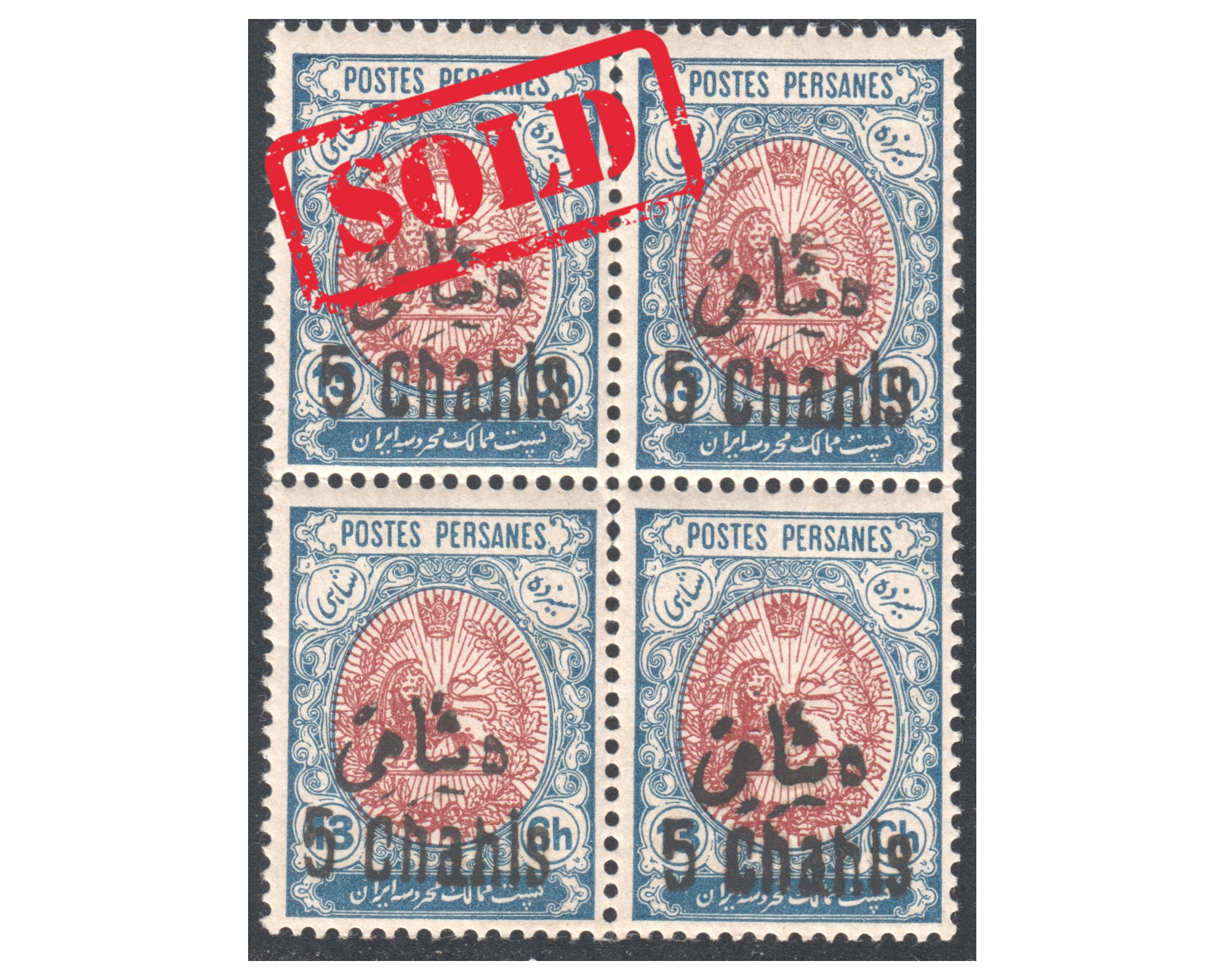 IPSC تمبر ۱۳ شاهی مشروطه با تعبیر قیمت بلوک ۴ تایی با سرتیفیکیت