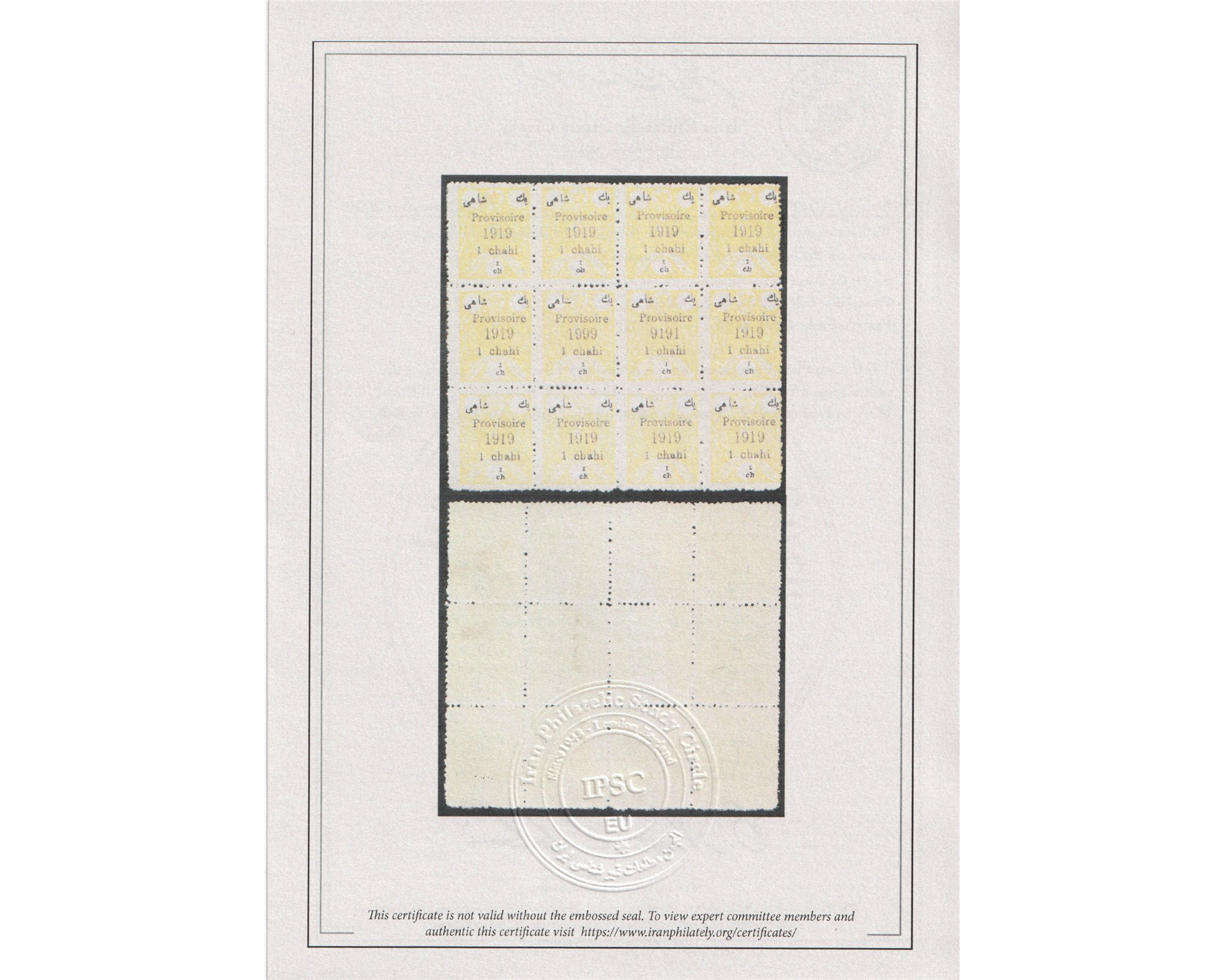 1919 1ch Block with Error 1999 and 9191 Certificate By IPSC