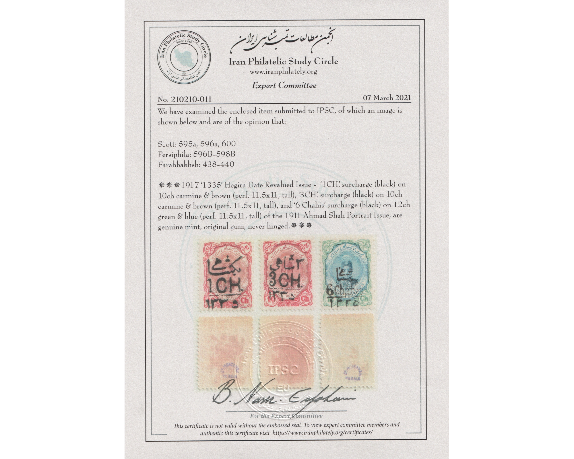 Certificate By IPSCCondition; Mint Never Hingedبدونه اثر شارنیه ـ کیفیت چسب عالیبرای دیدن با بهترین کیفیت ماوس کامپیوتر را روی تصویر تکان دهید