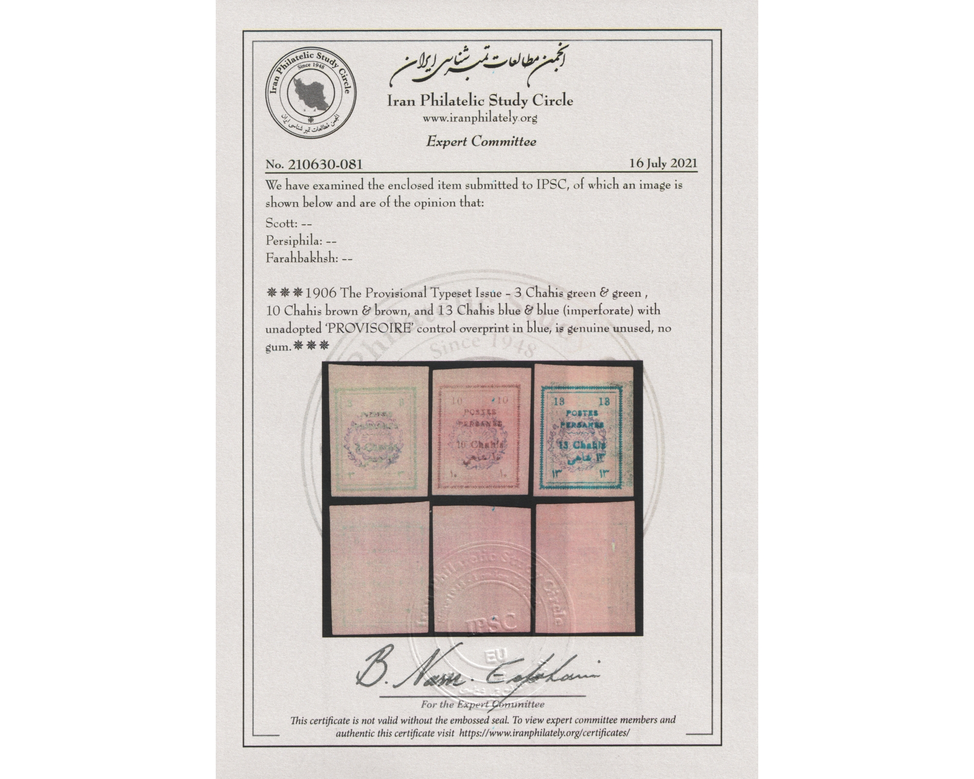 1906 Unadopted " PROVISOIRE" Control Overprint