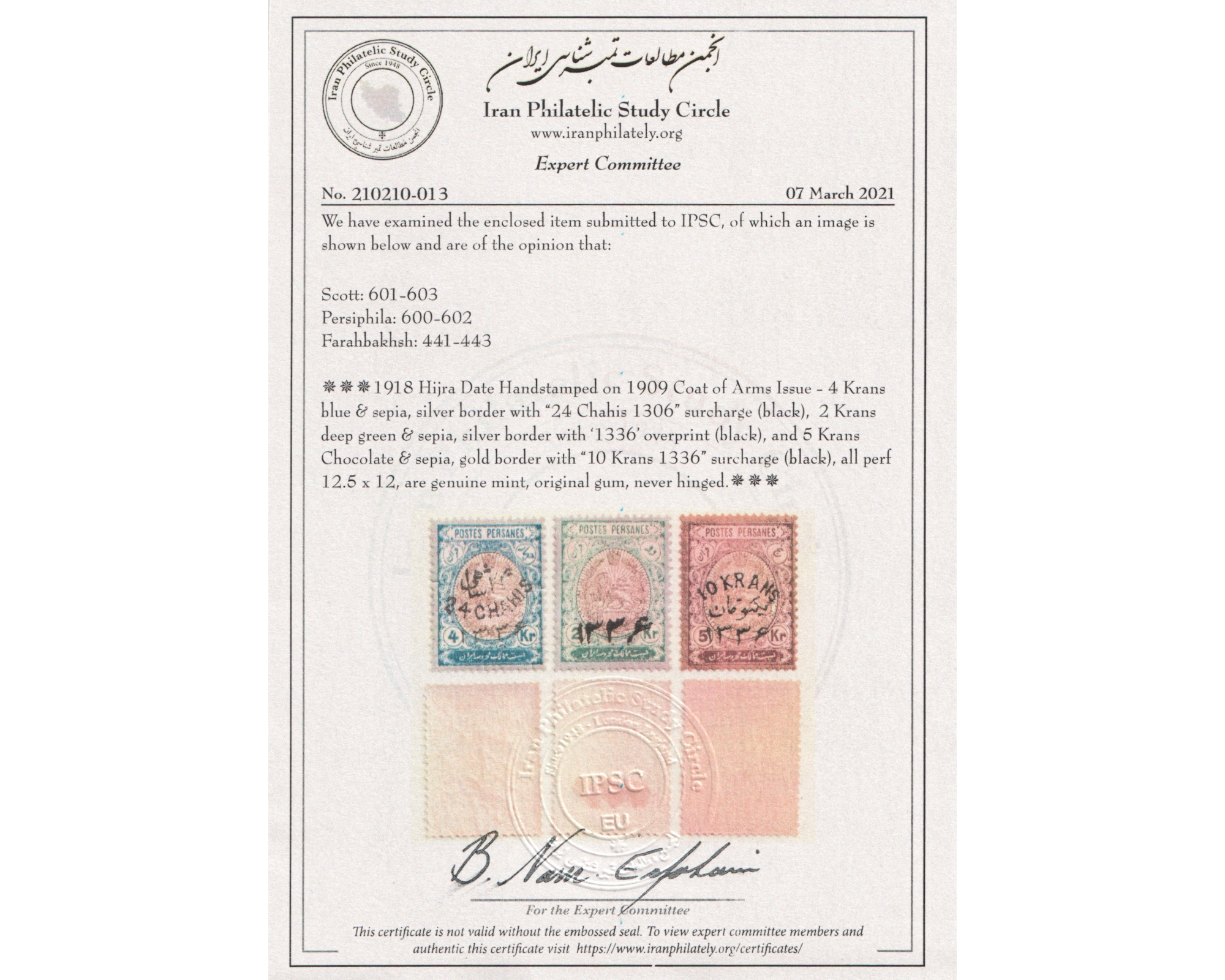 Condition: Mint Never HingedCertificate By IPSC بدون اثر شارنیهبرای دیدن با بهترین کیفیت ماوس کامپیوتر را روی تصویر تکان دهید