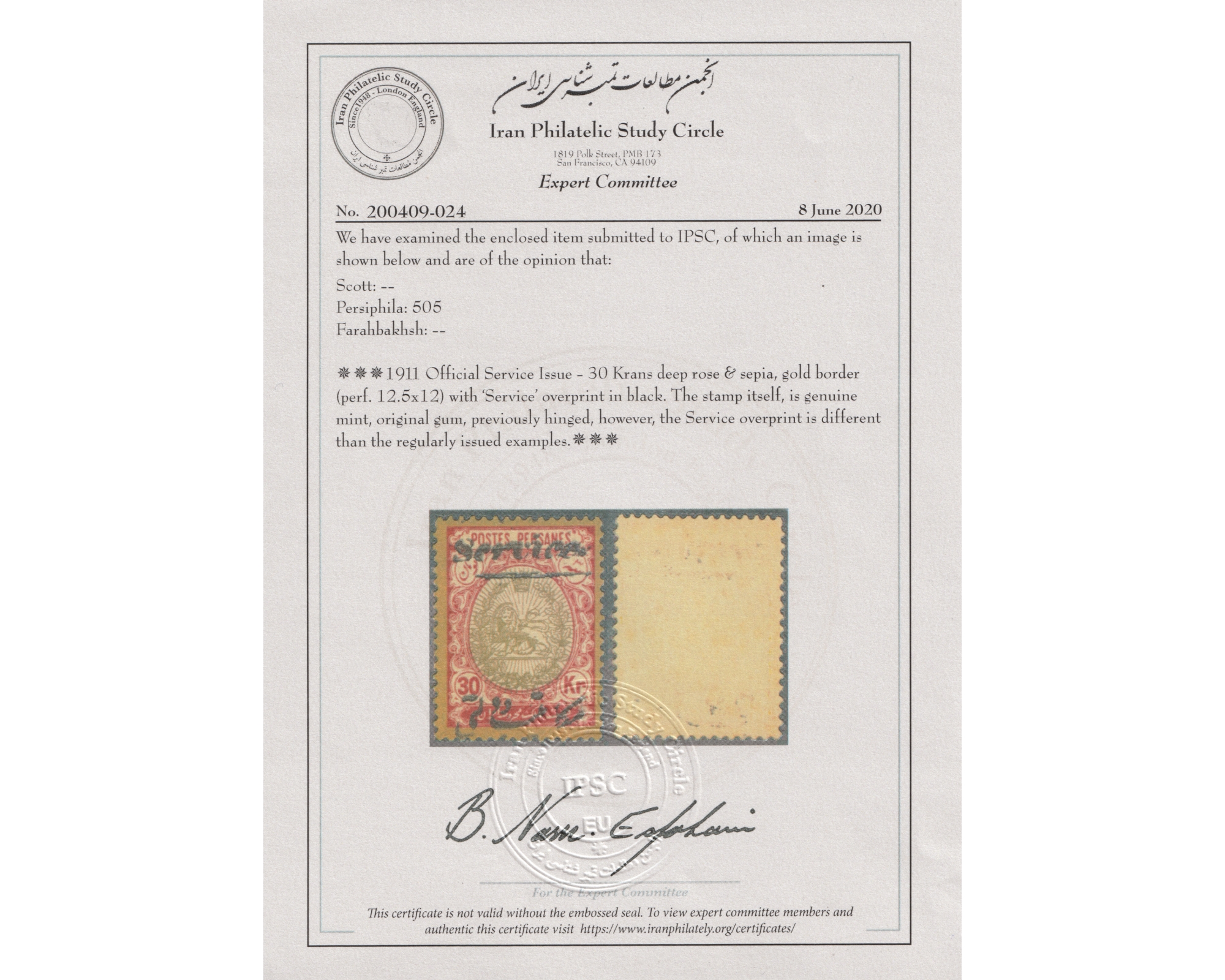 Condition:Mint HingedCertificate By IPSC با اثر بسیار ضعیف شارنیهبرای دیدن با بهترین کیفیت ماوس کامپیوتر را روی تصویر تکان دهید