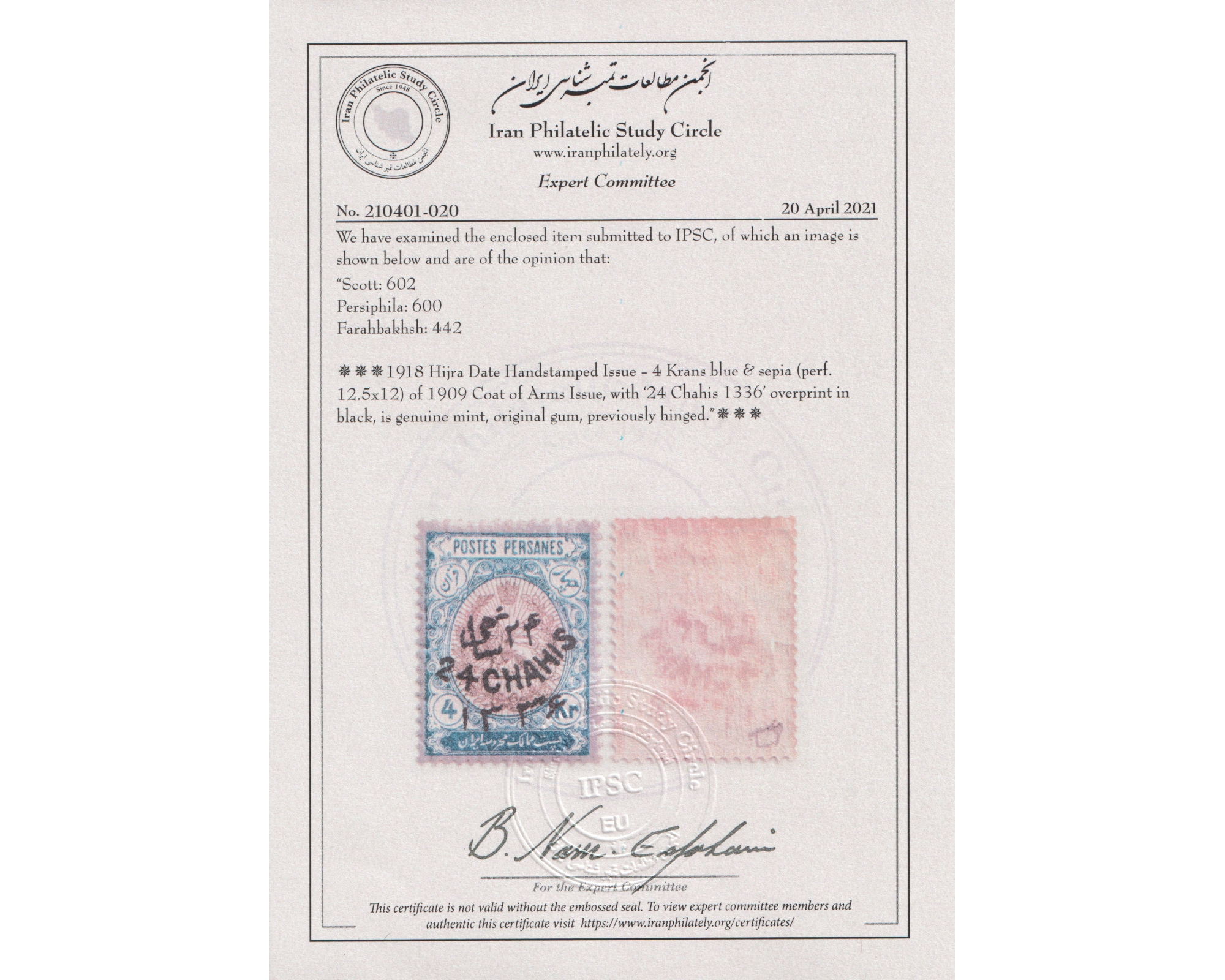 Certificate by IPSCCondition; Mint Light Trace of Hinge با اثر بسیار ضعیف شارنیهبرای دیدن با بهترین کیفیت ماوس کامپیوتر را روی تصویر تکان دهید