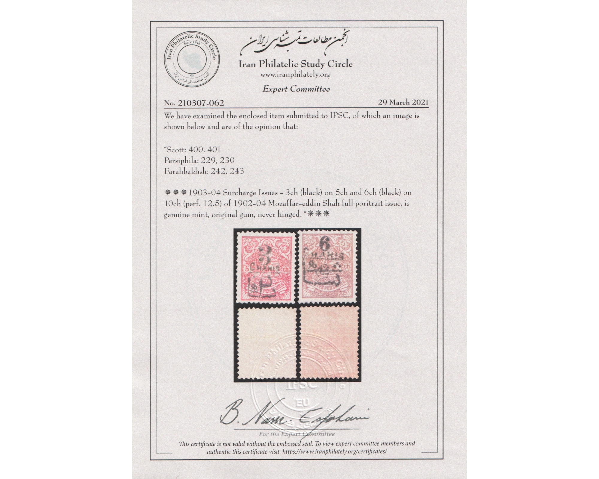 Certificate by IPSCCondition: Mint Never Hingedبا کیفیت عالی بدون اثر شارنیهبرای دیدن با بهترین کیفیت ماوس کامپیوتر را روی تصویر تکان دهید
