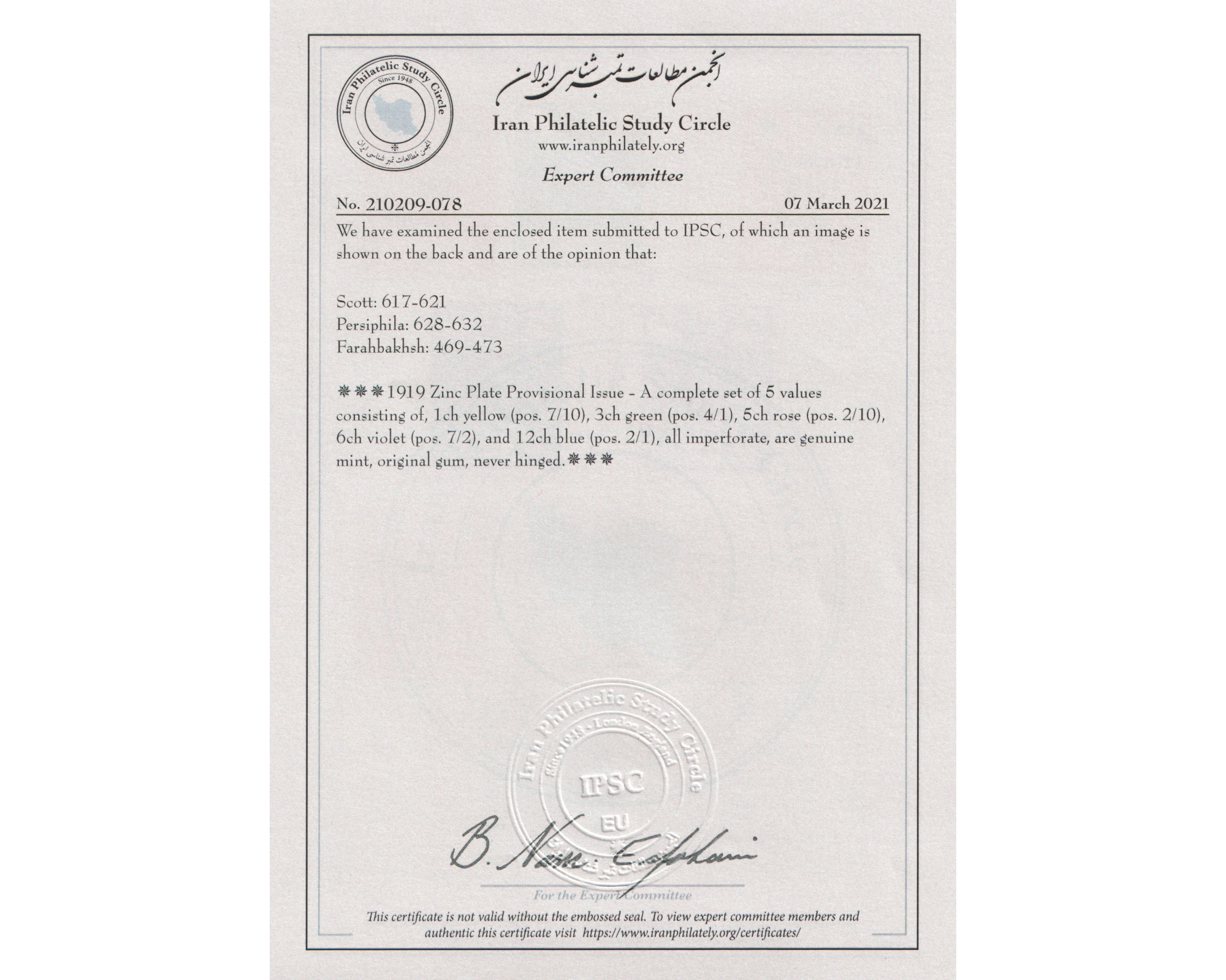سری تمبر های ۱۹۱۹ بدون دندانه با چسب اصلی