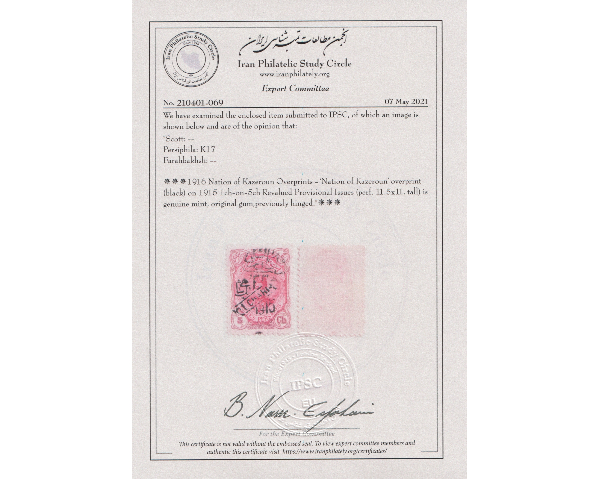 Certificate by IPSCCondition; Mint Light Trace of Hinge با اثر بسیار ضعیف شارنیهبرای دیدن با بهترین کیفیت ماوس کامپیوتر را روی تصویر تکان دهید