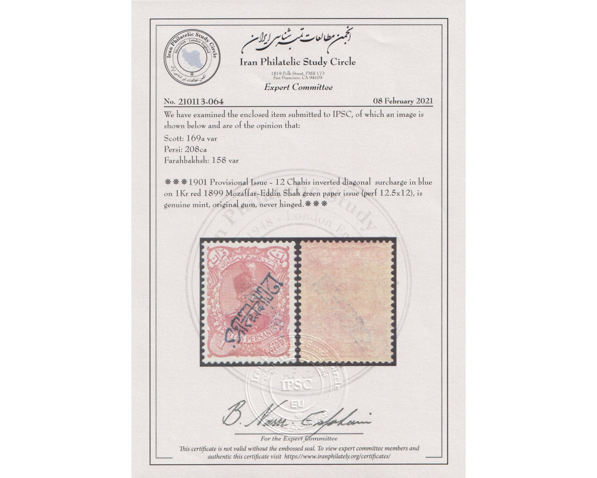 Certificate By IPSCCondition; Mint Never Hingedکیفیت عالی بدون اثر شارنیهبرای دیدن با بهترین کیفیت ماوس کامپیوتر را روی تصویر تکان دهید