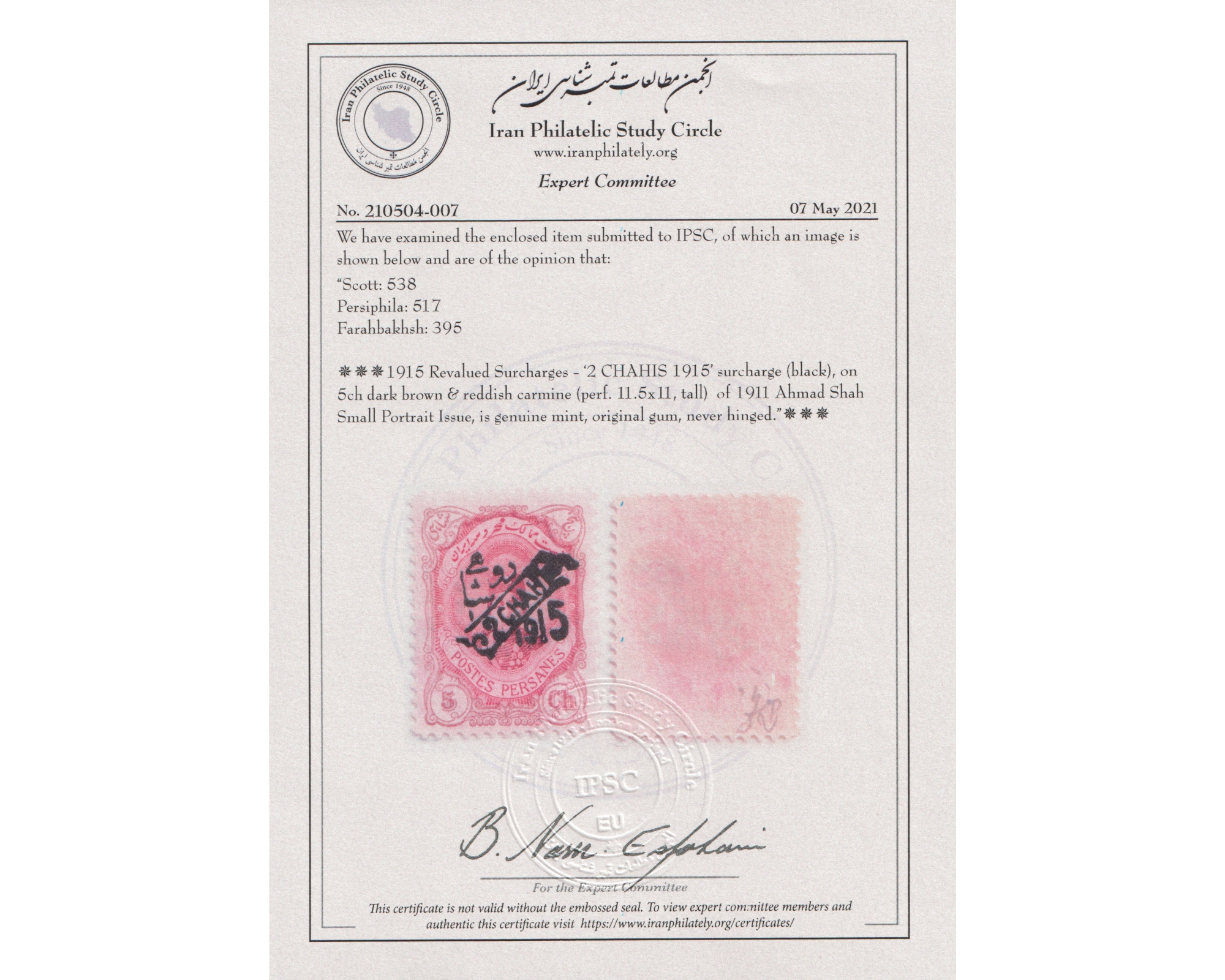 Condition: Mint Never HingedCertificate By IPSC بدون اثر شارنیهبرای دیدن با بهترین کیفیت ماوس کامپیوتر را روی تصویر تکان دهید