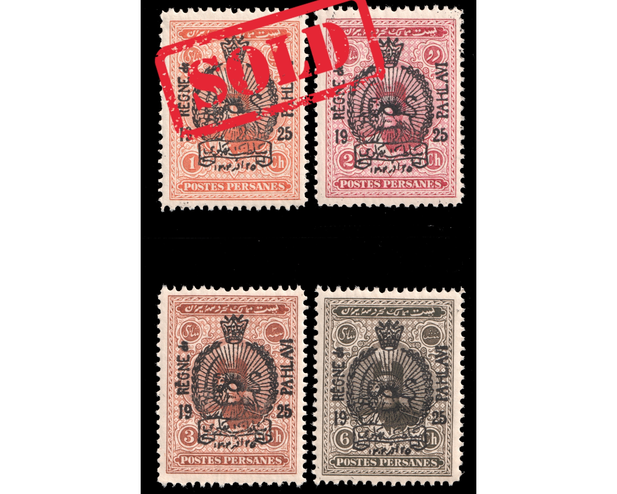 سال ۱۳۰۴ تمبرهای احمد شاه با مهر سلطنتی پهلوی