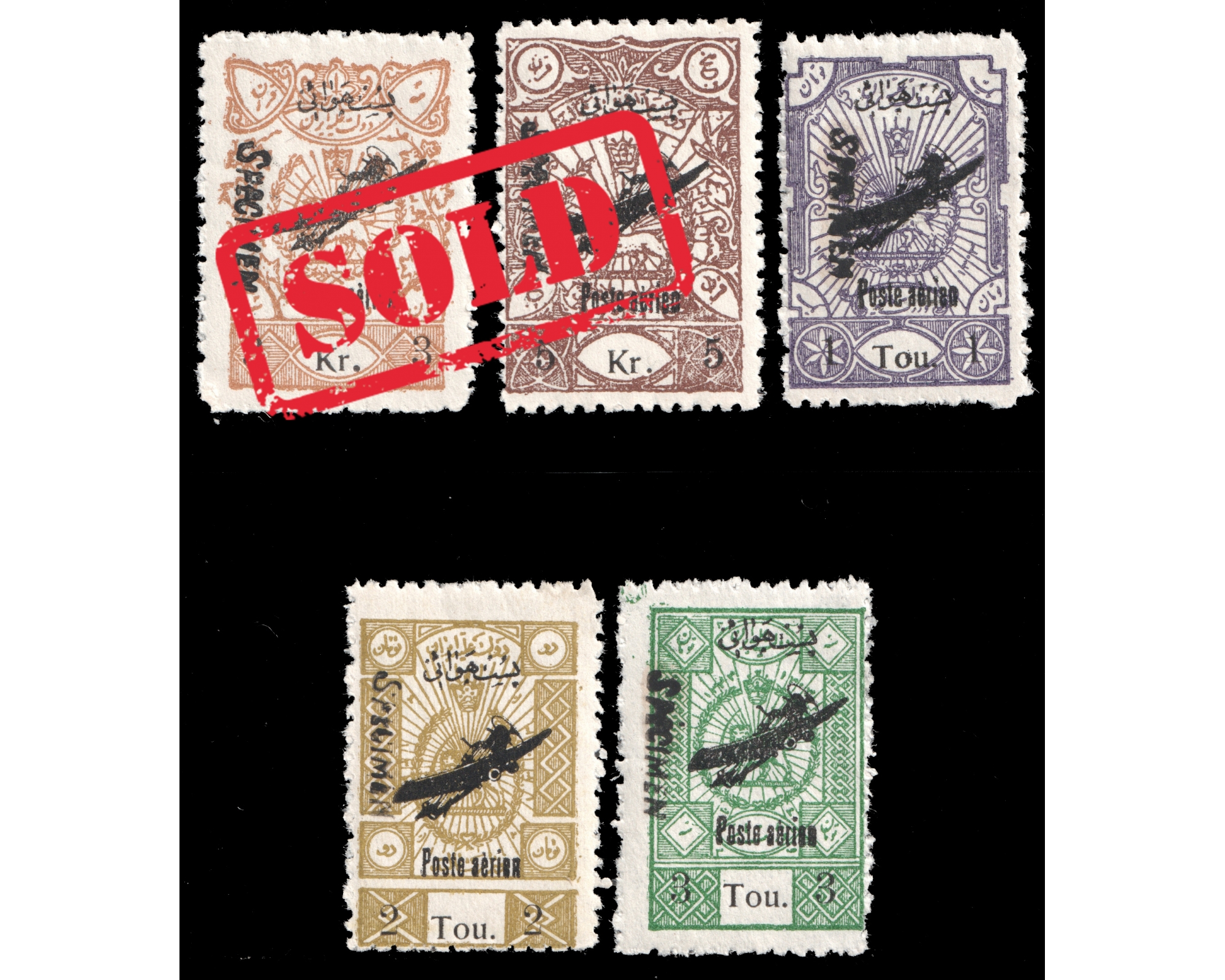 روچاپ پست هوائي با خط نسخ بر روي تمبرهاي ماليه سری نمونه