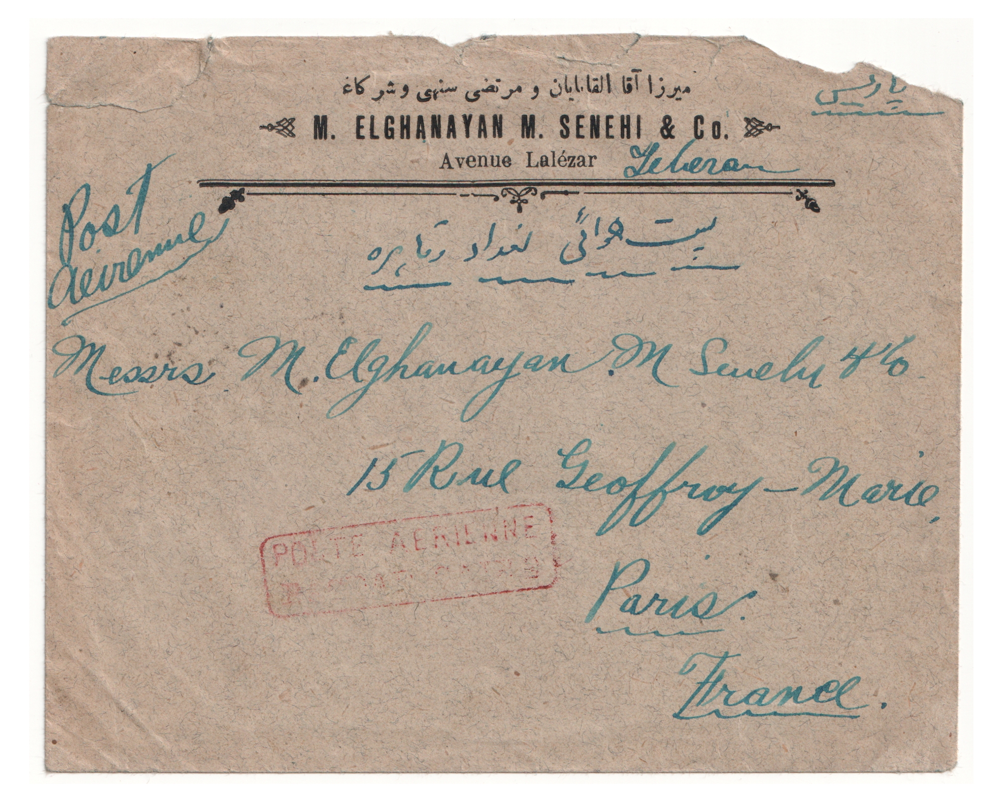 1923 Early Airmail from Tehran to Paris