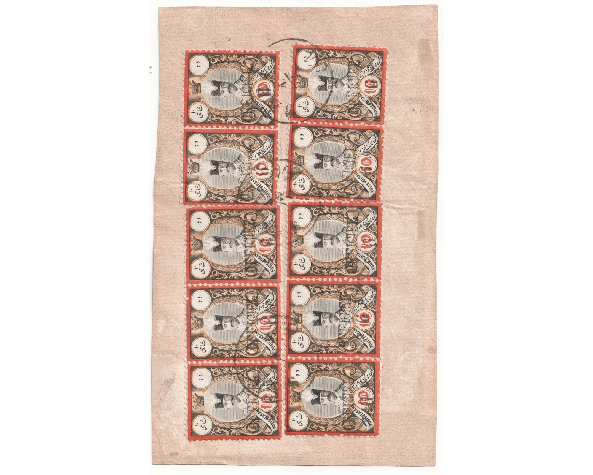 1885 rare Waybill with 20 x (6ch on 10ch), The largest number of this stamp on any single postal document.