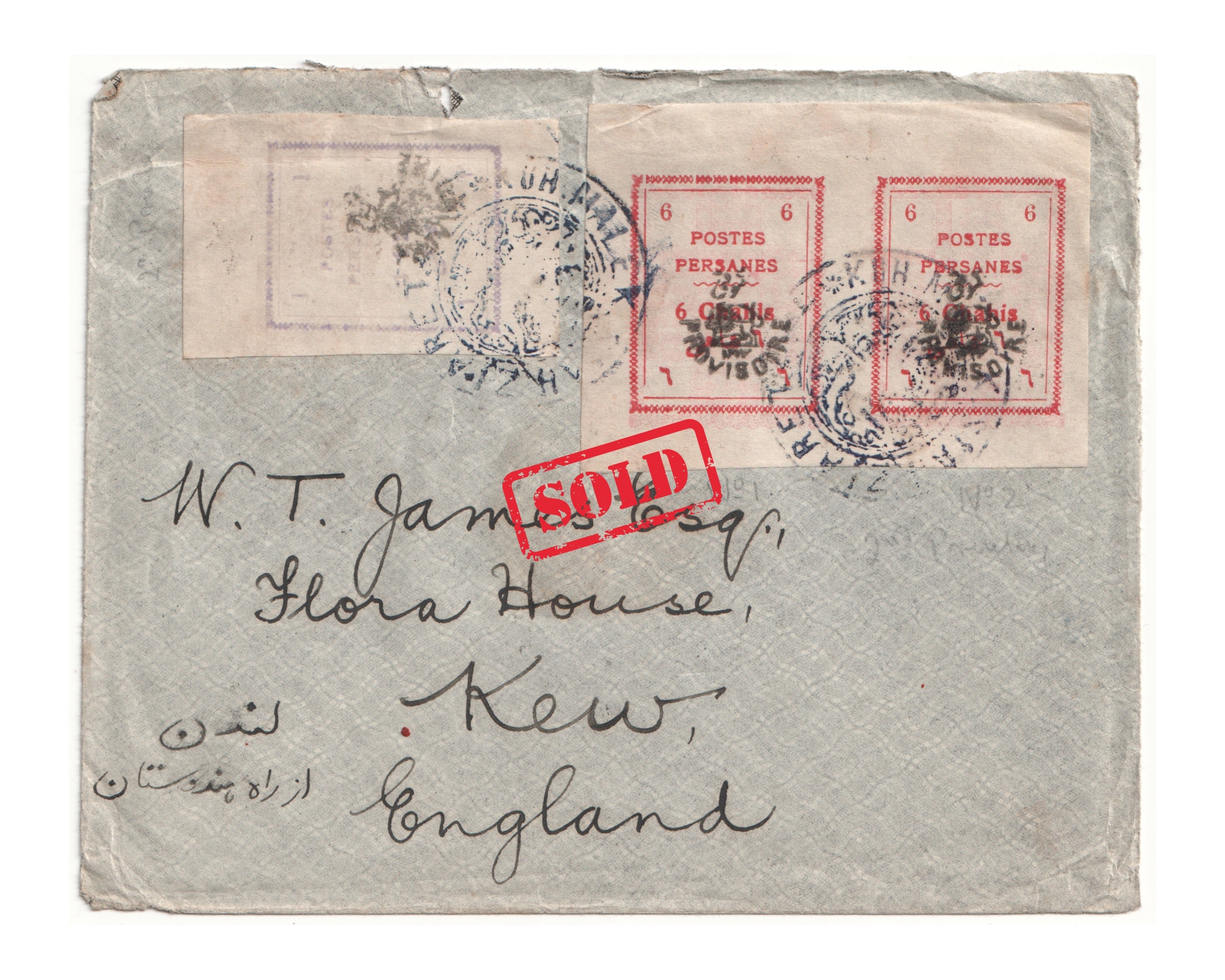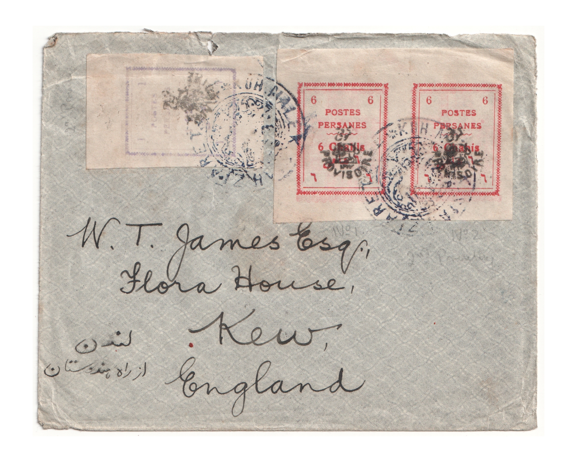 1906 Cover to London tied by Kuh Siah Malek Ziearat Postmark