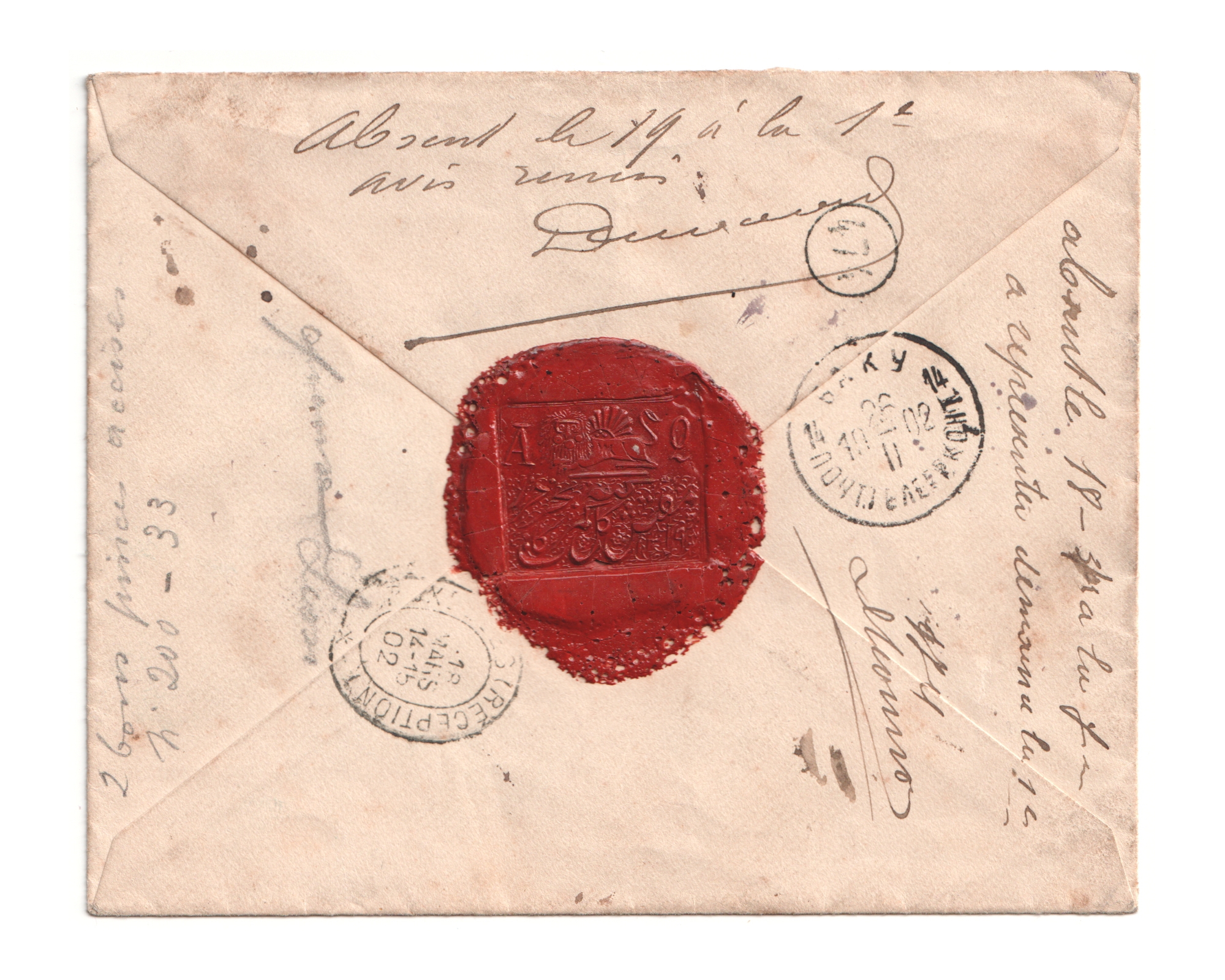 1902 The Post Master General of Gilan and Mazandaran Province due to shortage of 1 kran stamp used Bisected 2 krans of 1899 issue on mail to international destinations. This covers is exteremly rare