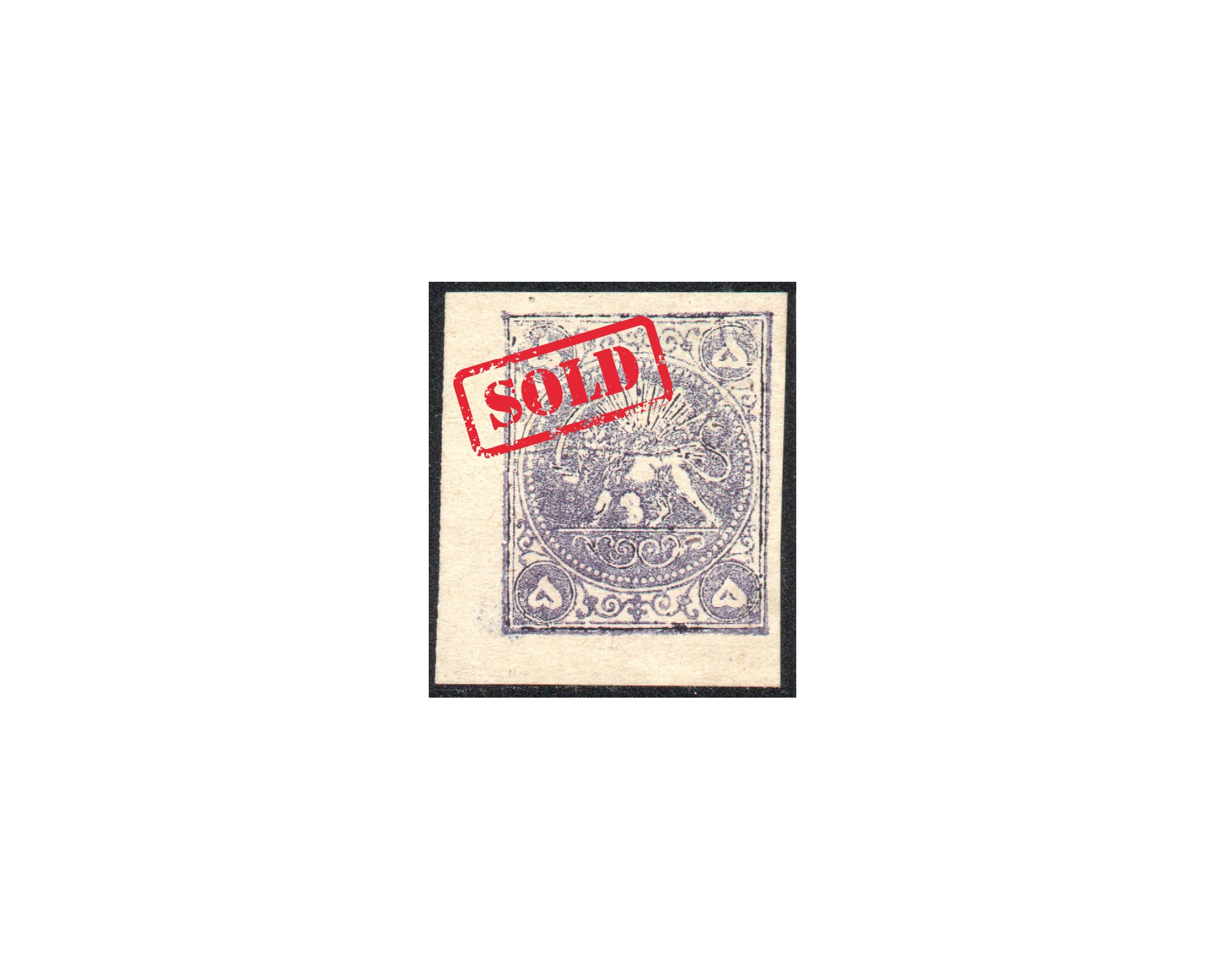 1878-79 Five Krans Clear Cliche' Issues - 5 Krans gray lilac, type C, on thick white wove paper, unused with four clear margins.Certificate by IPSCبرای دیدن با بهترین کیفیت ماوس کامپیوتر را روی تصویر تکان دهید