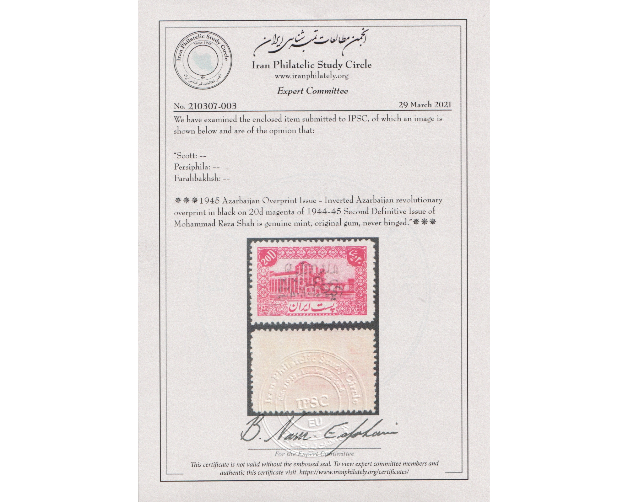 Certificated by IPSCCondition : Mint Never Hinged بدون اثر شارنیهبرای دیدن با بهترین کیفیت ماوس کامپیوتر را روی تصویر تکان دهید