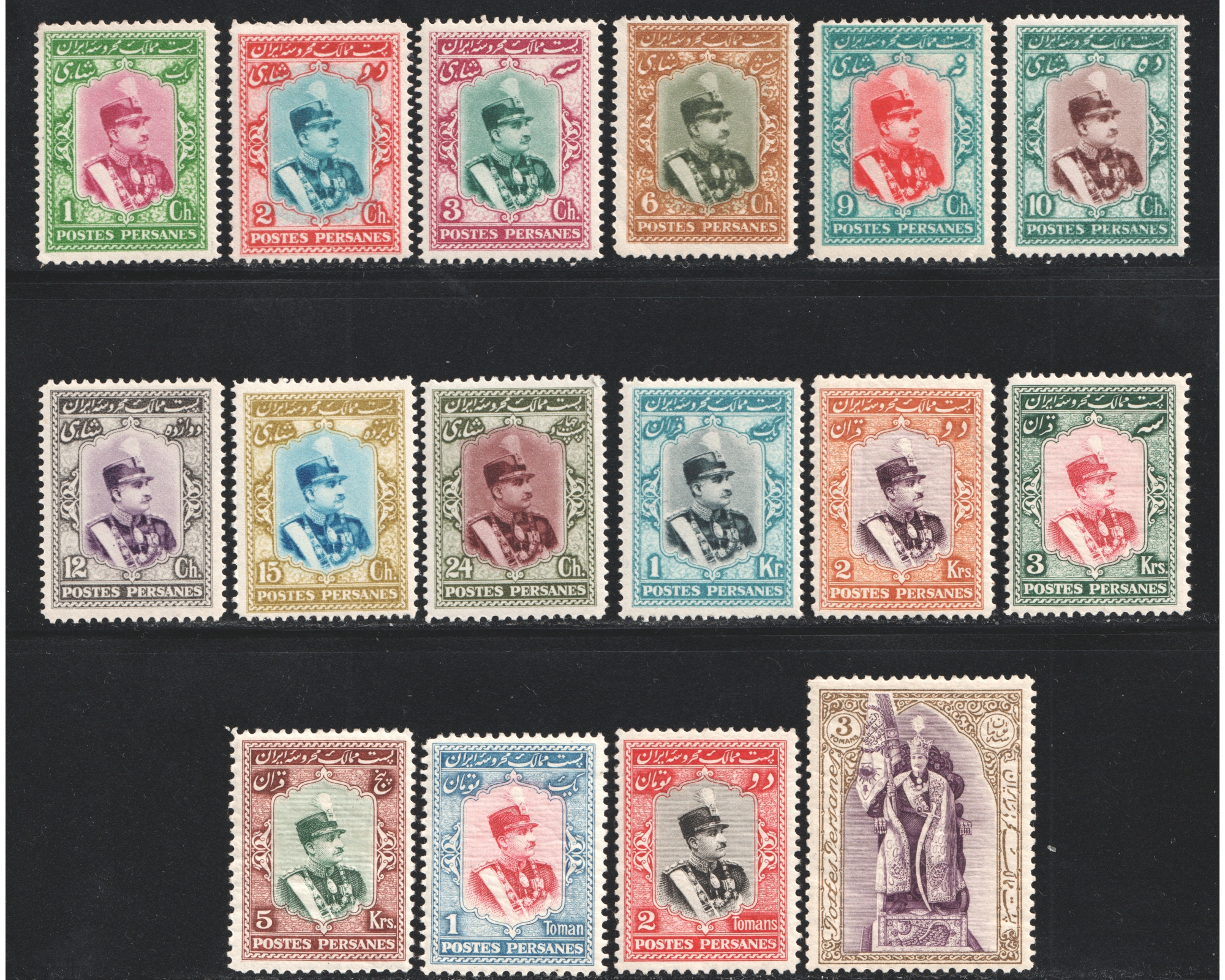 سری تاجگذاری رضا شاه پهلوی بدون اثر شارنیه Condition; Mint Never Hinged بدونه اثر شارنیه ـ کیفیت چسب عالی
