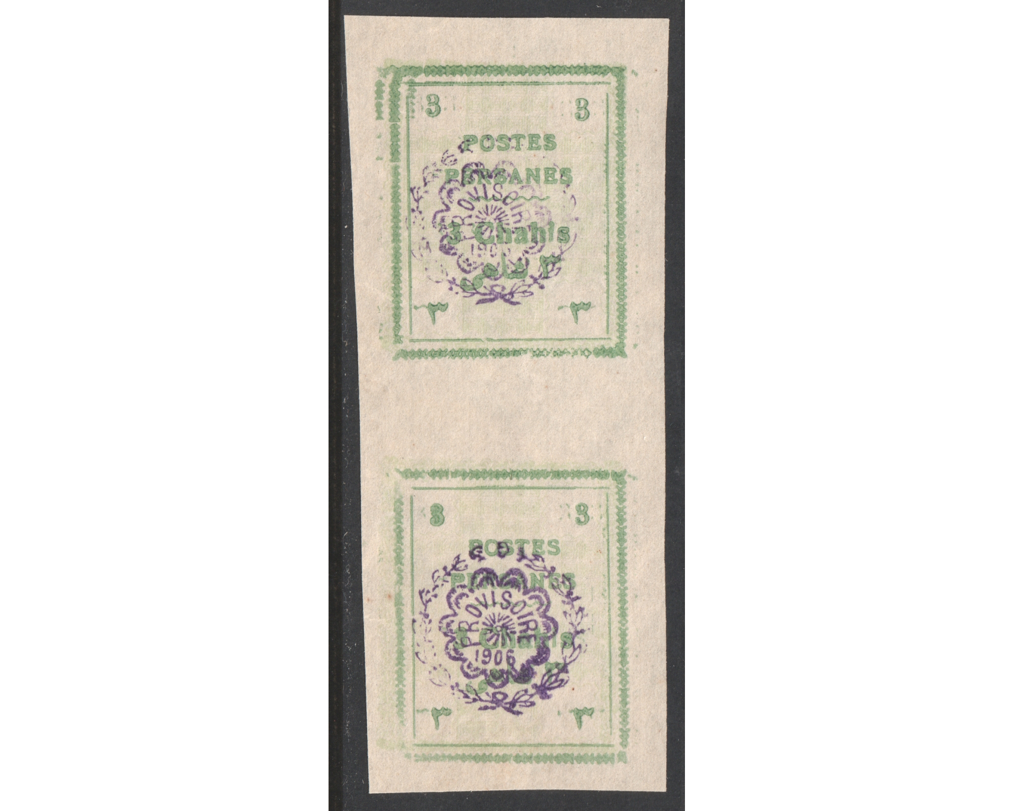 1906 Mozafar Edin Shah 3ch Unadopted Overprint