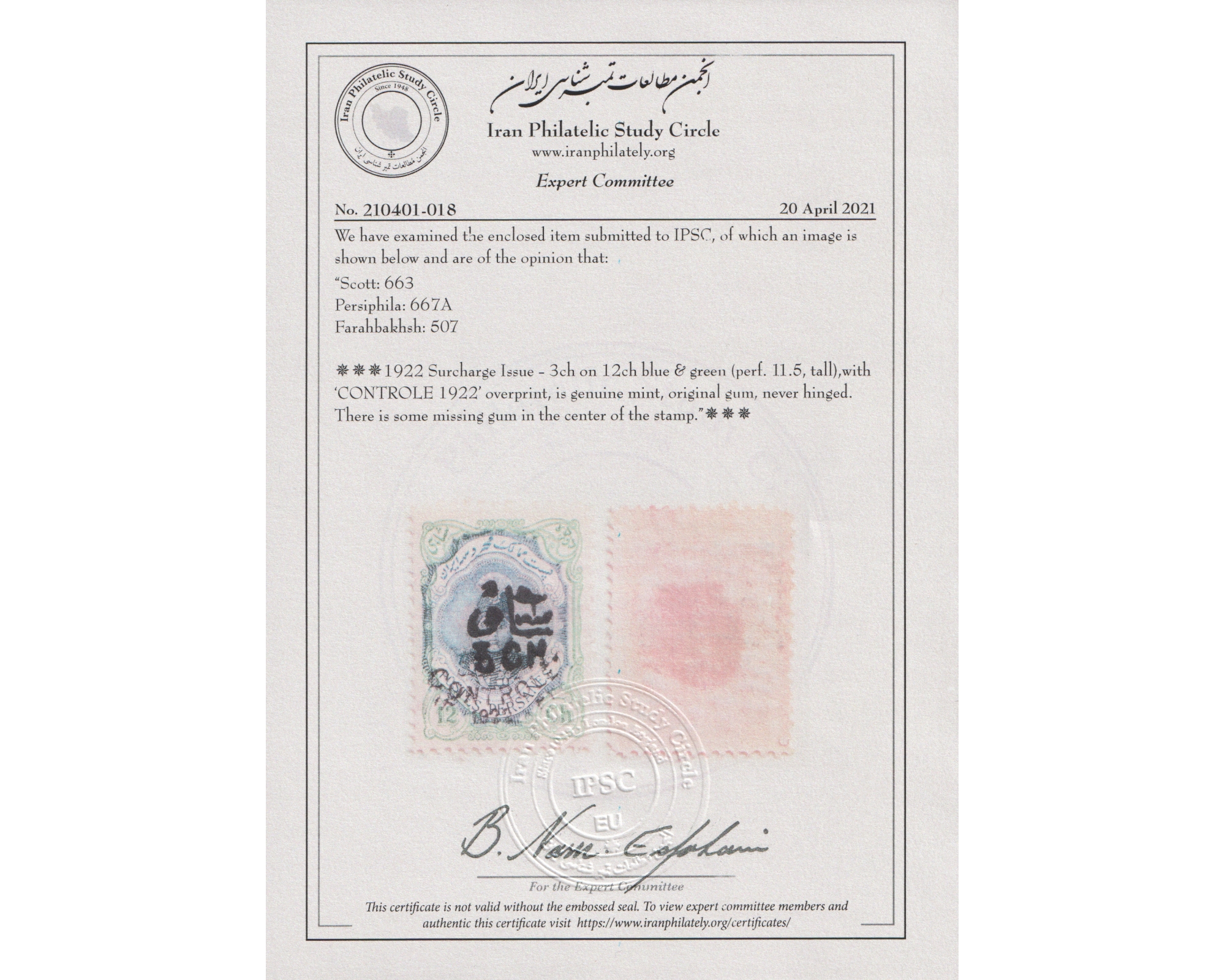 Condition: Mint Never HingedCertificate By IPSC بدون اثر شارنیهبرای دیدن با بهترین کیفیت ماوس کامپیوتر را روی تصویر تکان دهید
