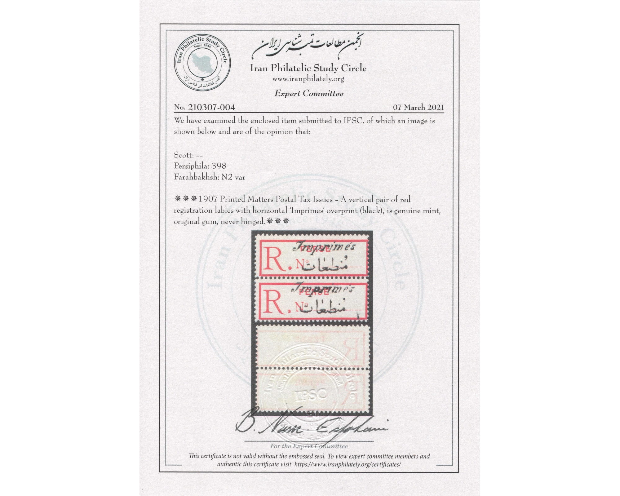 Certificated By IPSCCondition; Mint Never Hingedبا کیفیت عالی بدون اثر شارنیهبرای دیدن با بهترین کیفیت ماوس کامپیوتر را روی تصویر تکان دهید
